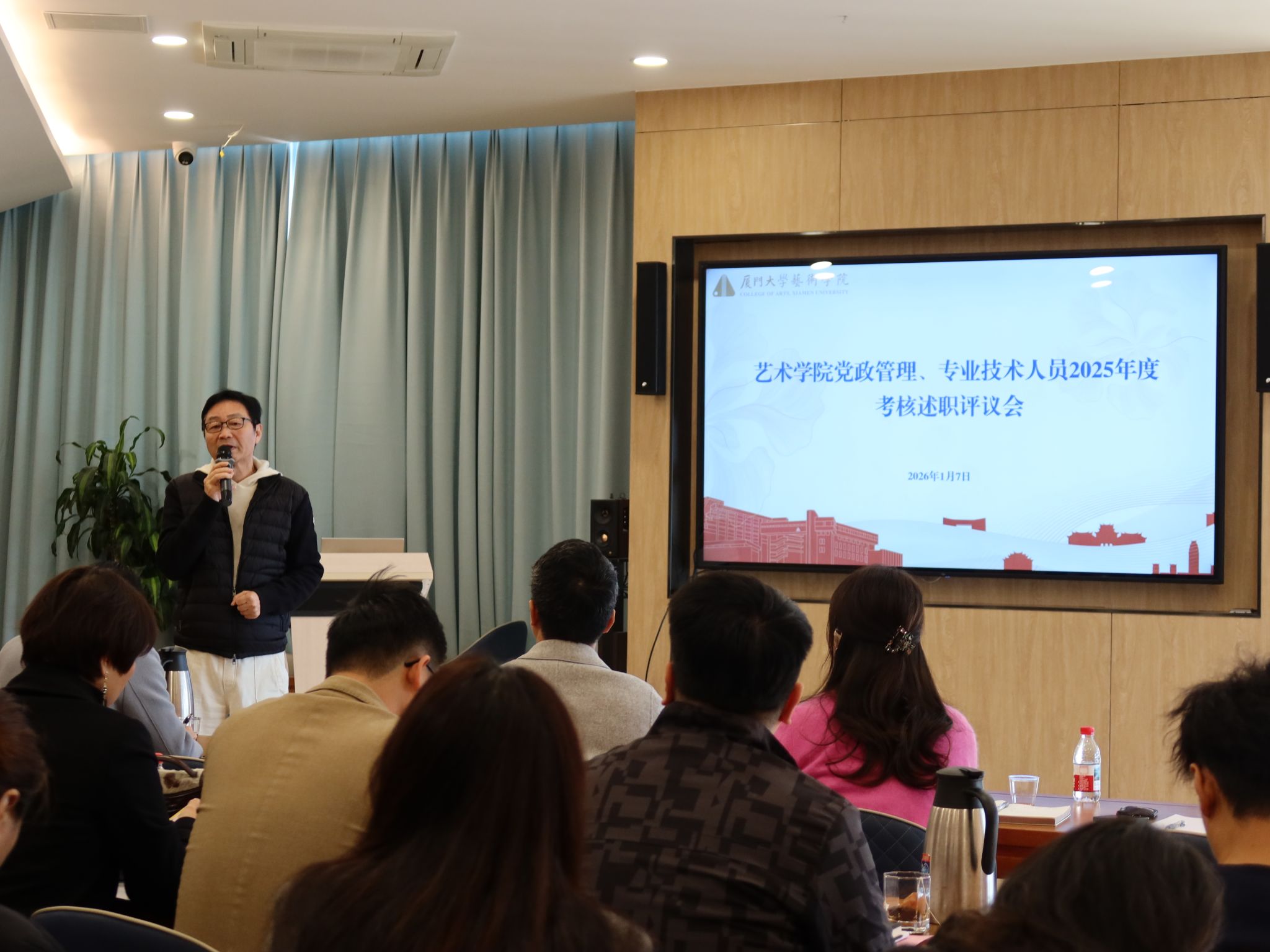刘赦院长在听取述职后表示,党政管理人员的工作是学院教学、科研、创作等核心业务顺利开展的重要基石,希望全体管理人员在新的一年里,继续秉持育人初心,牢固树立以师生为中心的服务理念,主动适应艺术学科发展规律和学院发展需要,不断提升履职能力和管理效能。