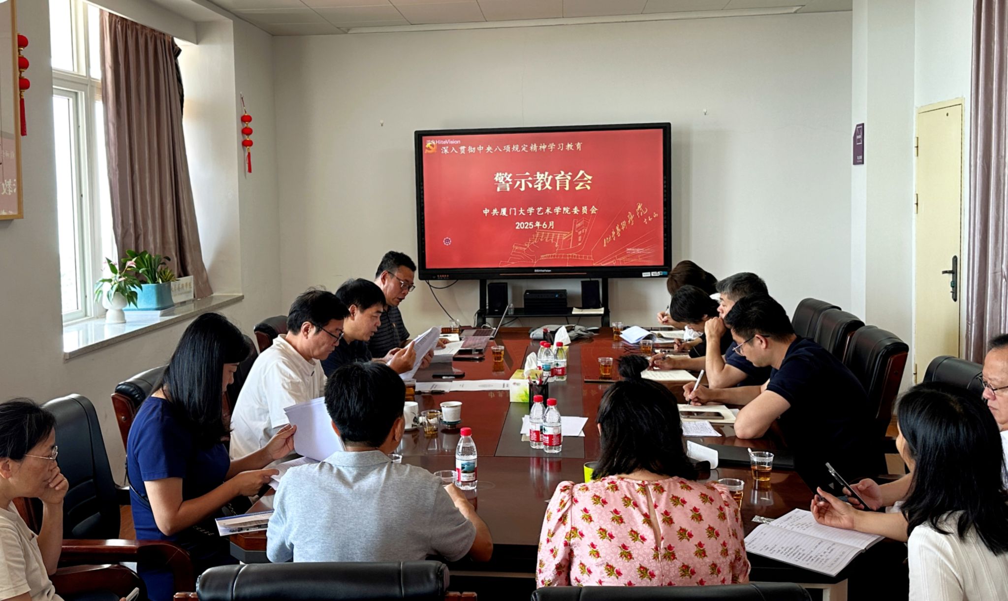 6月18日上午,艺术学院党委深入贯彻中央八项规定精神学习教育警示教育会在A411会议室召开,学院处级领导干部、各系负责人、教工党支部书记、科级干部等参加会议,会议由学院党委书记张必华主持。