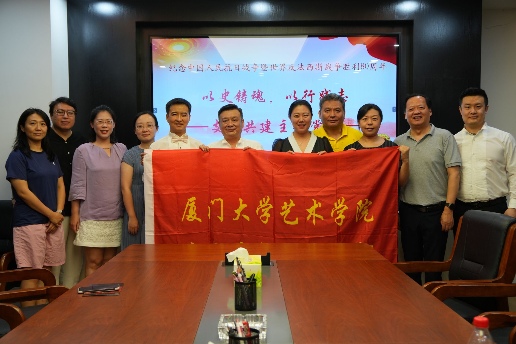 为纪念中国人民抗日战争暨世界反法西斯战争胜利80周年,7月7日,艺术学院音乐系教工党支部联合厦门市台湾艺术研究院党支部共同开展了“以史铸魂 以行践志”主题党日活动。此次活动以交响清唱剧《血色黎明》的创作为纽带,通过座谈交流与现场观演相结合的方式,进一步深化两岸文化艺术交流,弘扬爱国主义精神。
