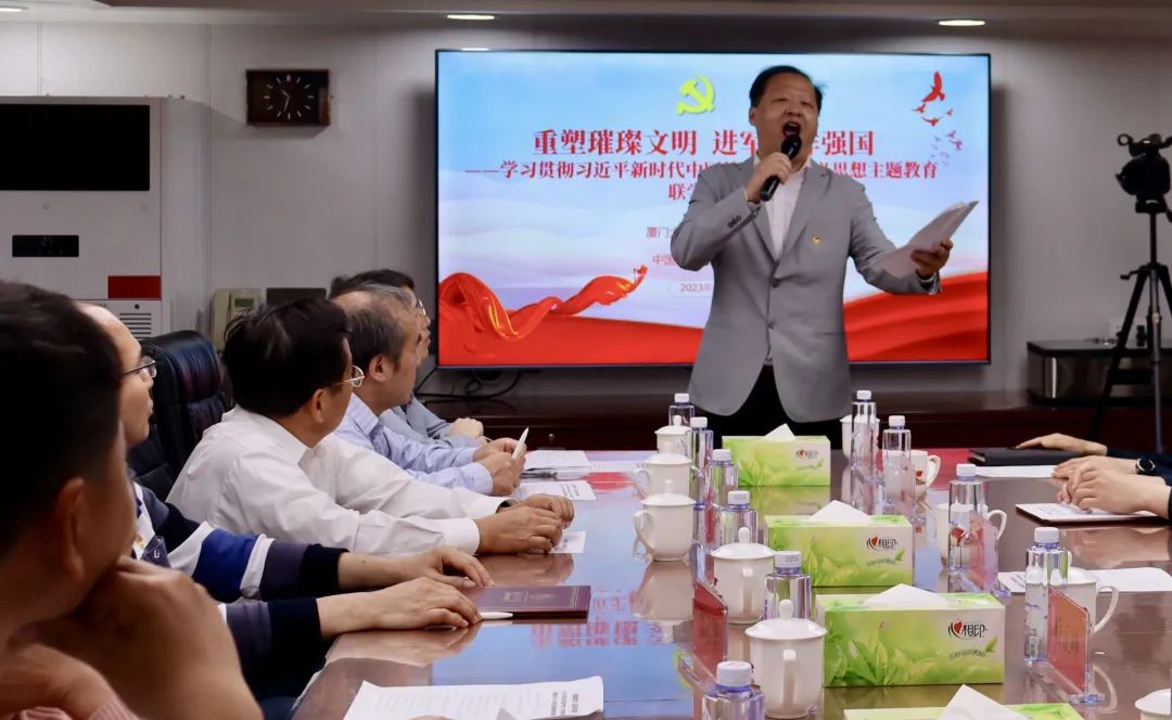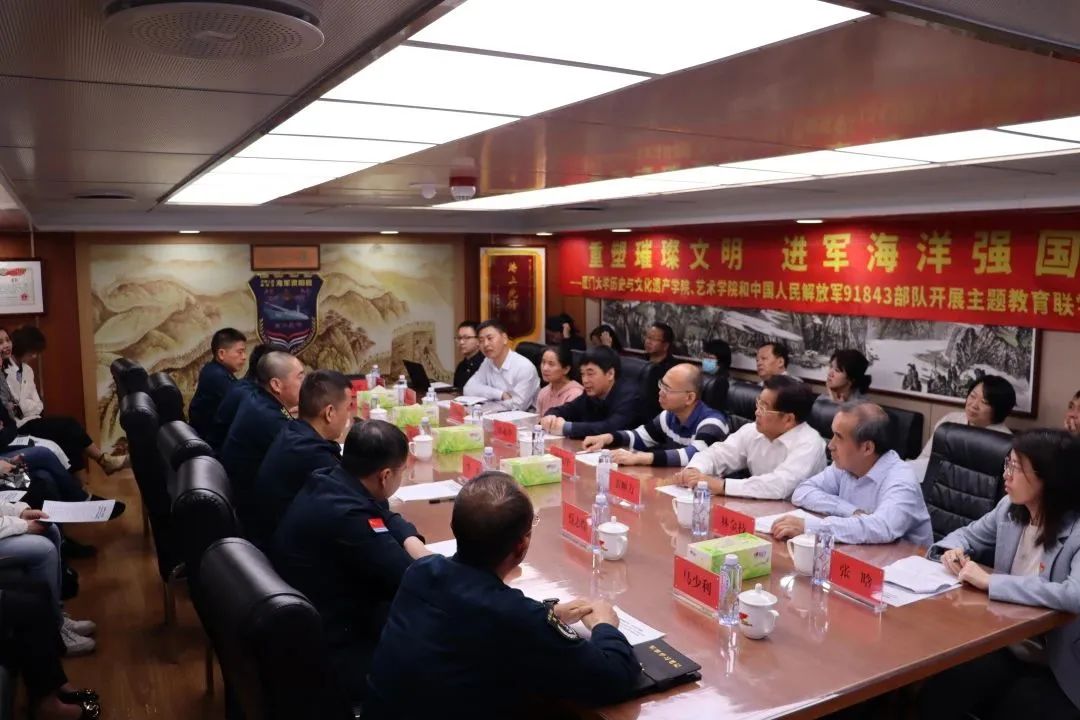 本次学习是历史与文化遗产学院、艺术学院党委理论学习中心组主题教育第一次专题学习,充分运用海军某舰的现场教学优势,聚焦学习习近平总书记关于海洋强国的重要论述,做到“学思想、强党性、重实践、建新功”。海军某部领导李鑫,海军某舰政治委员矫正坤,厦门大学基层党建联络员、主题教育第二巡回指导组组长林金枝,厦门大学主题教育第一巡回指导组副组长张秀丽,艺术学院党委书记张必华,历史与文化遗产学院党委书记陈锦华,两个学院党政领导班子成员,党委理论学习中心组成员,师生党支部书记、委员,团委书记,辅导员,党务秘书和部队官兵代表等30余人参加活动,活动由历史与文化遗产学院党委副书记张晗主持。