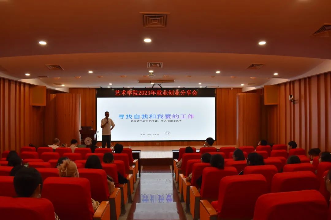 随着毕业季的到来,很多同学对自己的未来规划十分迷茫。为了进一步解决同学们的疑惑,也为了充分发挥优秀校友的榜样作用,艺术学院特意请来了两位毕业的校友来向同学们分享他们的创业经验,希望借此能让处于迷茫期的同学们找到一丝方向。此次邀请的两位校友分别是吉岛音乐的主理人徐聪学长和厦门禾旬文化传媒有限公司创始人刘景峰学长。