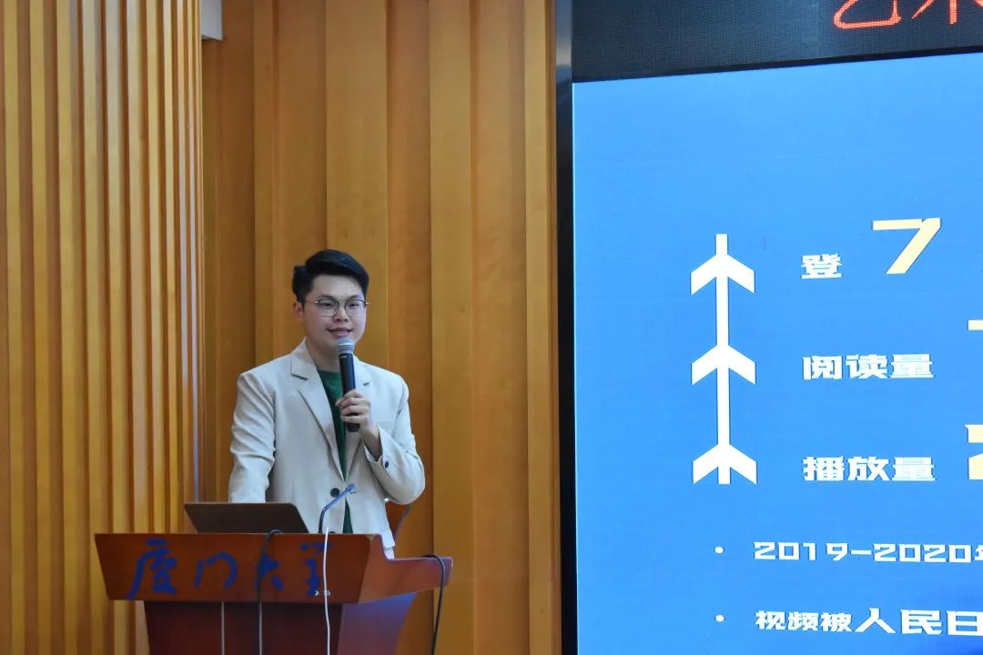 刘景峰学长此次分享的主题是毕业即创业。 刘景峰学长是艺术学院2016级的本科生,在毕业后就投身到创业当中,现如今是厦门禾旬文化传媒有限公司主理人。学长首先将禾旬出品的图片、短片展现给大家,让大家了解了禾旬公司的主要工作内容,工作形式,其次详细的给大家介绍了公司业务流程。