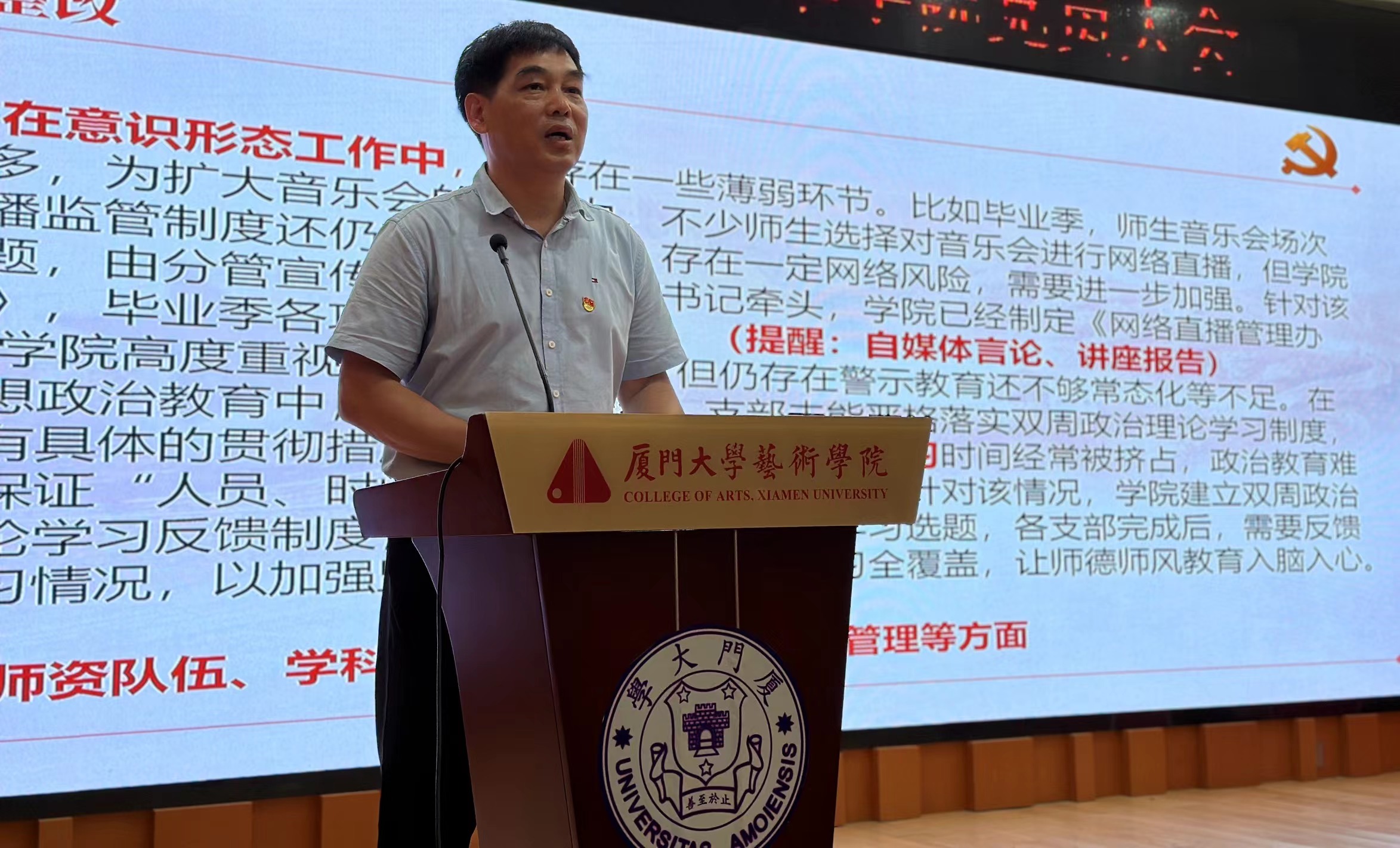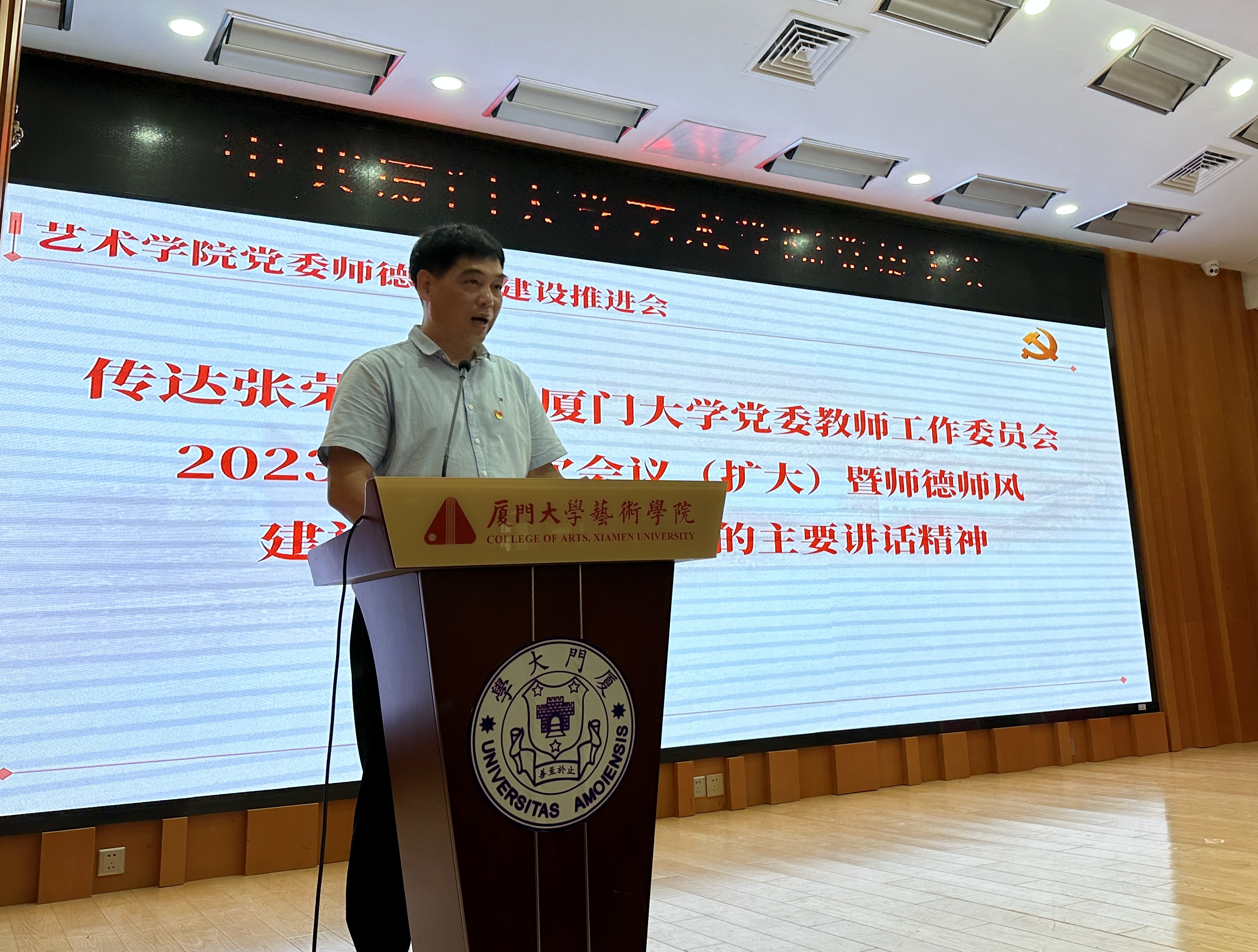 7月19日,厦门大学艺术学院在小音乐厅组织召开学院师德师风建设推进会,学院党政班子,教师代表等近100人参加会议。