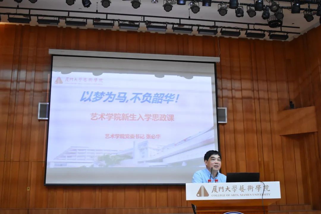 9月9日上午9点,艺术学院2022级新生开学式在大音乐厅举行。学院领导、教师代表、学生代表分别发言,大家共同抒怀厦大百年历史,畅谈学院、学科发展历史以及未来人生规划。院党委书记张必华主持会议。开学式后,张必华以“以梦为马,不负韶华”为题,为新生上开学第一堂思政课。