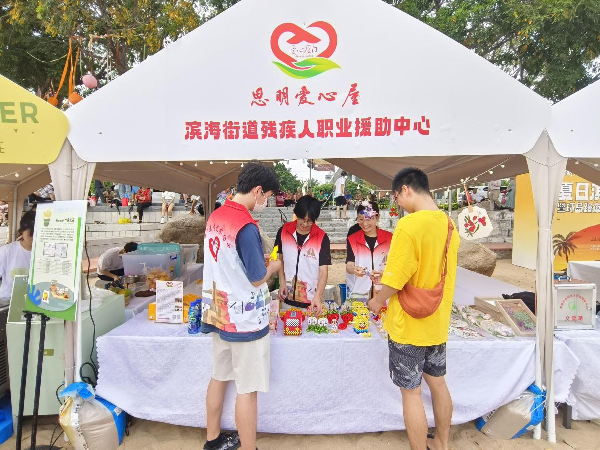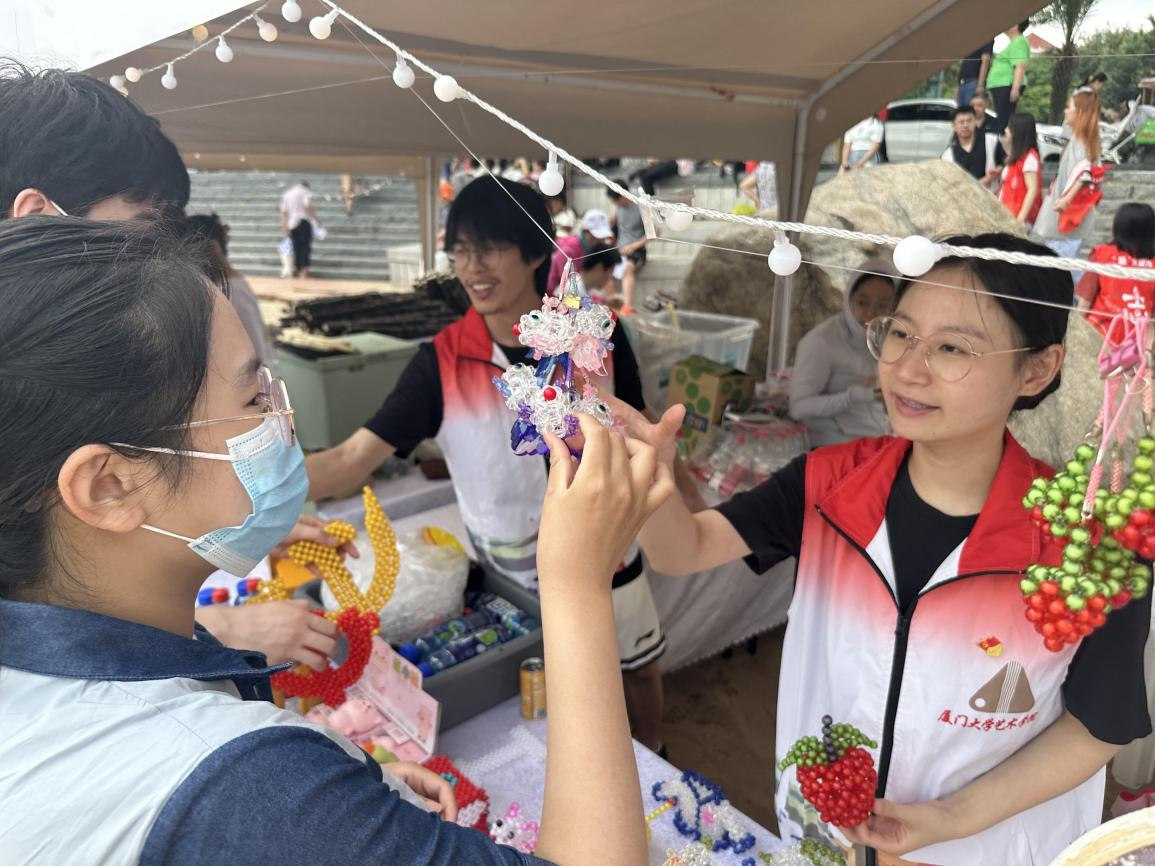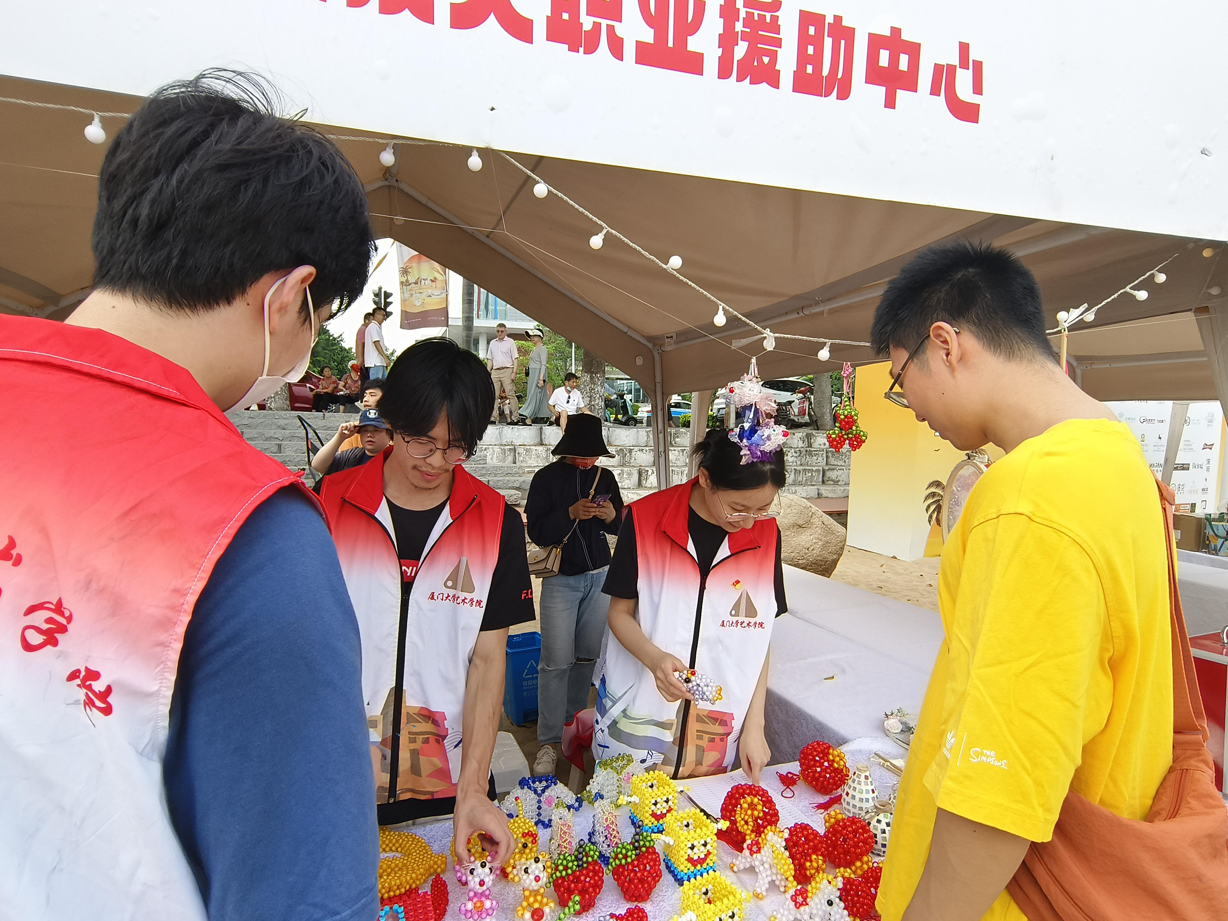 6月3日下午,以夏日滨海市集活动为契机,艺术学院研究生第一党支部联合滨海街道残疾人援助中心在环岛路书法广场将3个月以来的手工艺品进行义卖。此次义卖的手工艺品全部是由滨海街道残疾人职业援助中心的学员亲手制作完成,义卖所得将全部返还给他们,帮助其改善生活。