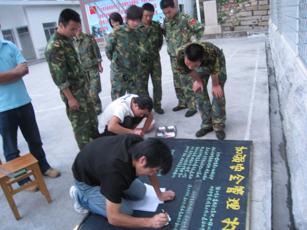 警备区通信连的司务长胡海星和排长周蕾热情地接待了同学们,双方进行了第一次座谈,之后,党员同学利用专业所长为通信连出版了板报。经过同学们仔细筹划和认真排版后,一期被通信连战士公认为最出色的板报完成了。厦门警备区通信连与厦门大学艺术学院美术系本科生第二党支部建立共建关系,缘于支部中的一名党员李可润,他曾经在大二的时候参军,在厦门警备区中锻炼了一年,对军队有了深厚的感情。在他与战友的牵头下,美术系本科生第二党支部很快与厦门警备区通信连建立了共建关系,商定将定期开展活动。将艺术带入军队,改变军队的单调生活。而学习军队严格的纪律,过硬的作风,也正是艺术学子迫切的需要。双方相信通过共建,将促进军民的友谊。