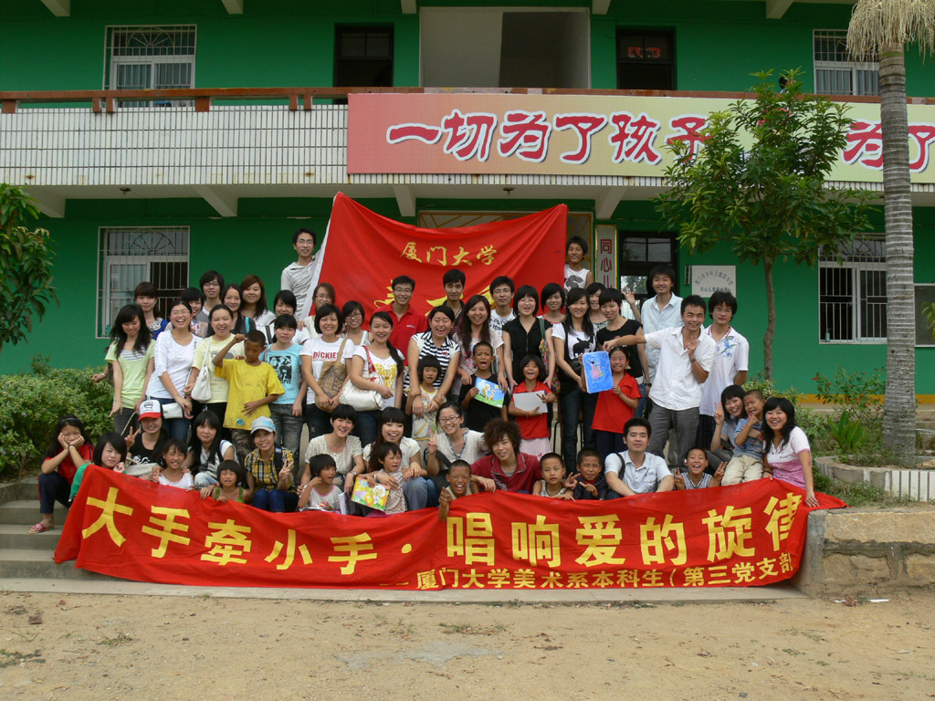 08年的10月18日早晨,艺术学院美术系本科生第三党支部带着给儿童院孩子们的礼物——几大包文具和食品,经过了一个多小时的车程来到翔安澳头村,而此行的目的地——翔安同心儿童院,就坐落在这个青山绿水,民风淳朴的小村庄里。
