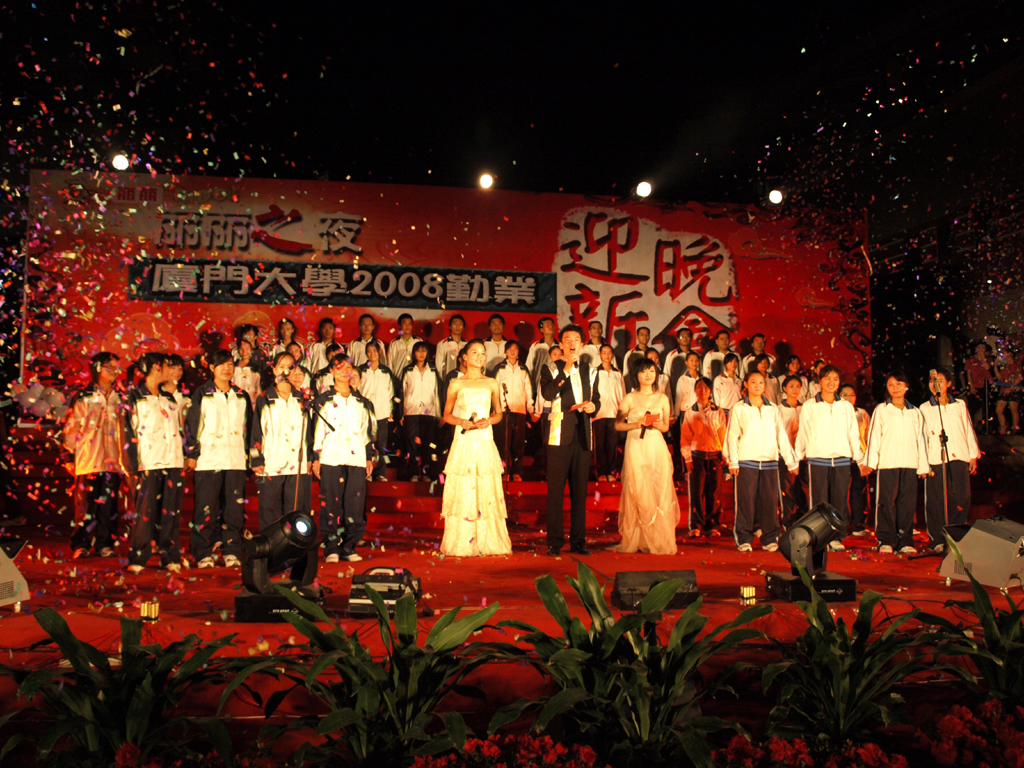 由艺术学院选送的民乐合奏《辉煌》一开场便点燃了现场的气氛。演员们精湛的演奏技巧以及完美的舞台展现力,让在场的每一个人都热血沸腾了起来。随后,现场气氛仍在升温——公共事务学院的同学们带来了刚柔相济的武术表演《武魂》和令人捧腹大笑的小品《大话英雄》。由化学化工学院选送的诗朗诵《爱在心中》,带着我们再次缅怀汶川大地震的遇难同胞以及家属,并代表三个学院的同学们向来自地震灾区的厦大学子致以最崇高的敬意。接着,三个学院的同学们带来的歌曲串烧以及化学化工学院带来的街舞《Dreaming girls》将晚会推向了高潮。晚会在合唱《同一首歌》中落下帷幕。