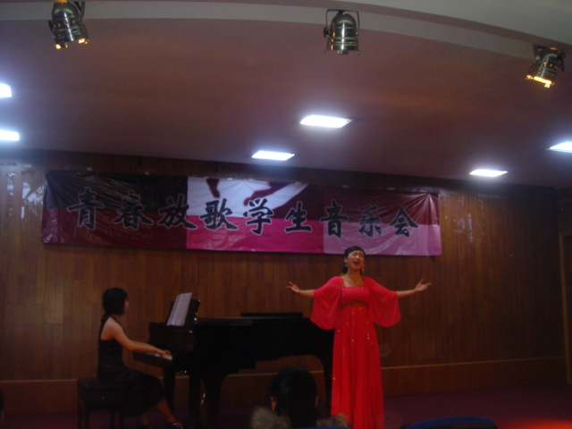 张淼带来的《金光一缕》充满了震撼的张力,饱含感情。作品通过对党的歌颂,表达了对党的一片深情。王强带来的《我怀着满腔热情》选自歌剧《帕里斯与海伦》,低沉的音调中富有磁性与共鸣,将一种压抑隐忍着的炽热感情表现得恰到好处。熊娅池带来的家喻户晓的《小白菜》有着凄婉回转的唱腔,表达了小女孩对娘的思念和受到欺辱的痛苦。方芳的《野玫瑰》带有简朴的民谣风味,也带来了清新甜美的音质。由刘江龙演唱的《你再不要去做情郎》选自歌剧《费加罗的婚礼》,演唱风格充满浓郁的表演色彩和强烈的戏剧情感。王晓宁带来的《像天使一样美丽》选自歌剧《唐帕斯夸勒》,悠扬浪漫的曲调被他清澈洪亮的声音演绎得更加完美。最后,陈海茜带来的《永远的花样年华》,将音乐会推向高潮。此曲兼以晋冀鲁豫地区的音乐和日本音乐嫁接组合,形式丰富多彩,轻松娴熟的演唱技巧将歌曲的优美旋律表现得淋漓尽致。