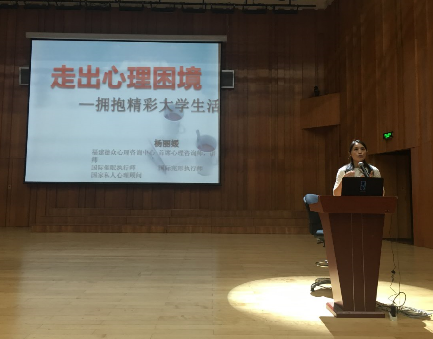 为了让新生们更好地适应大学生活,更好地开展学习和活动,我院邀请厦门市著名心理咨询师杨丽媛老师于12月18日下午16.30在艺术学院新音乐厅开展“走出心理困境,拥抱精彩大学生活”的心理专题讲座。讲座吸引了本科生、研究生新生和各年级心理委员以及其他感兴趣的同学300余人参加。院团委副书记游璐昀、辅导员张秀丽、王延斌、谢芃出席了此次讲座。讲座由学院党委副书记邹江涛主持。讲座开始之前,表彰了在第十届厦门大学校园心理剧大赛中代表艺术学院参赛,历史上首次进入决赛并获得三等奖的同学。