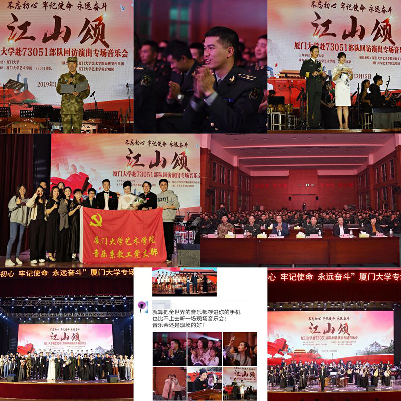 12月15日,陆军第73集团军某旅迎来了一批特殊的客人,厦门大学艺术学院民族室内乐团和厦门大学艺术学院合唱团共160余人,为该旅官兵带来了“不忘初心、牢记使命、永远奋斗——《江山颂》”专场音乐会。