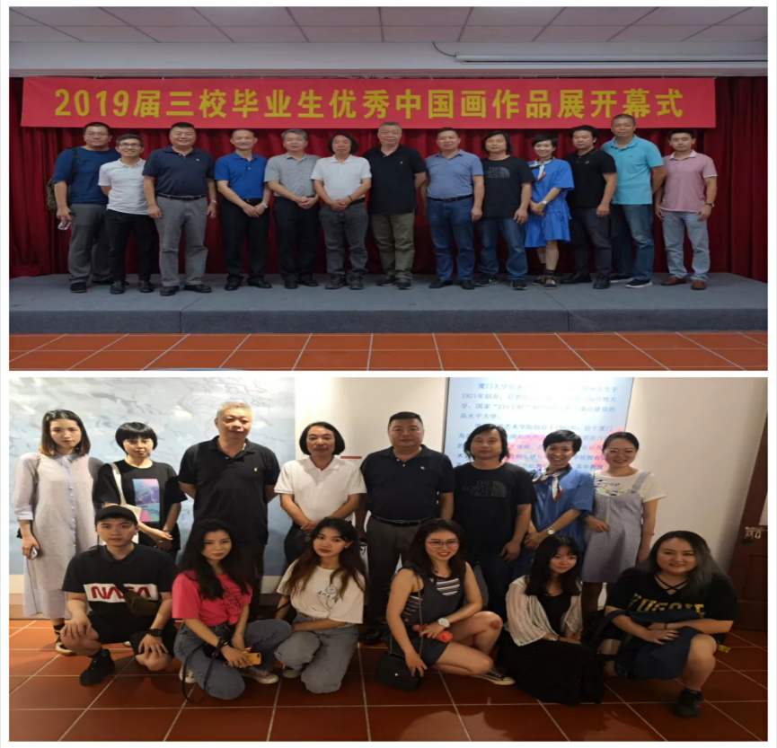6月19日下午三点,由福建省美术家协会主办,厦门大学艺术学院、福州大学厦门工艺美术学院、集美大学美术学院承办的“2019届三校毕业生优秀中国画作品展”在集美大学美术学院美术馆开幕。我院美术系主任陈金华教授、副主任杨寒松教授、中国画教研室何专连副教授、陈晓娟老师等出席了开幕式。参加开幕式的还有厦门市美术家协会副主席林涛老师、集美区文联主席何庆余主席、福州大学厦门工艺美术学院绘画系副主任林永潮教授、集美大学美术学院党委书记吴卫平老师、集美大学美术学院美术馆副馆长汪晓东博士、集美大学美术学院美术馆展览部主任林深老师、集美大学美术学院教学科科长张荔老师、集美大学美术学院中国画教师李炯毅博士。