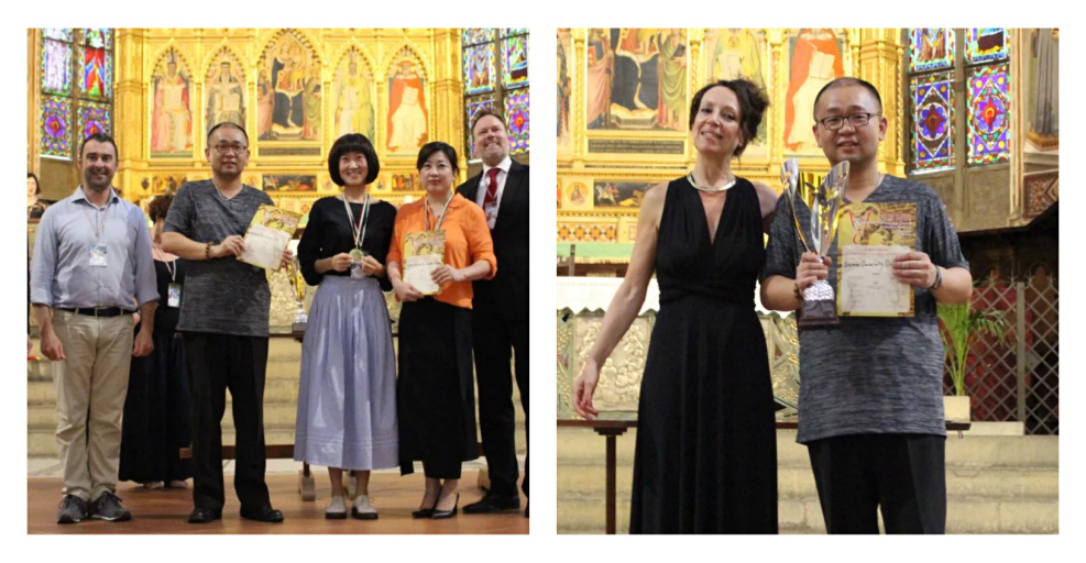 近日,我院许彩萍、李晶、叶飞声等10位师生赴意大利参加“佛罗伦萨国际音乐节暨音乐比赛”,获得五项大奖:厦门大学民族室内乐团获室内乐团组金奖第一名;厦门大学李晶、叶飞声、许彩萍、林晨获器乐重奏组金奖第一名;厦门大学"琴箫筝笛"二重奏(李晶、叶飞声)获民族民间音乐组金奖第一名。此外,我院音乐系青年教师叶飞声获最佳男演奏家奖、厦门大学民族室内乐团获最佳传统音乐奖。这是艺术学院建院以来,首次派出民族室内乐团参加国际赛事,也是民乐专业自建院以来获得的最好成绩,再次为厦门大学、为中国传统音乐争得了荣誉。