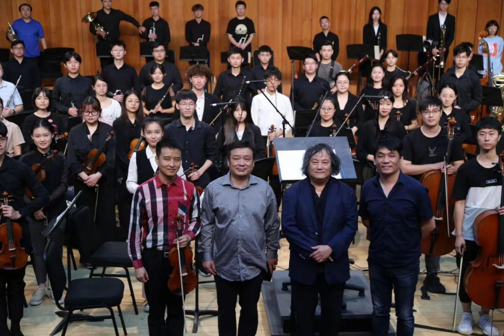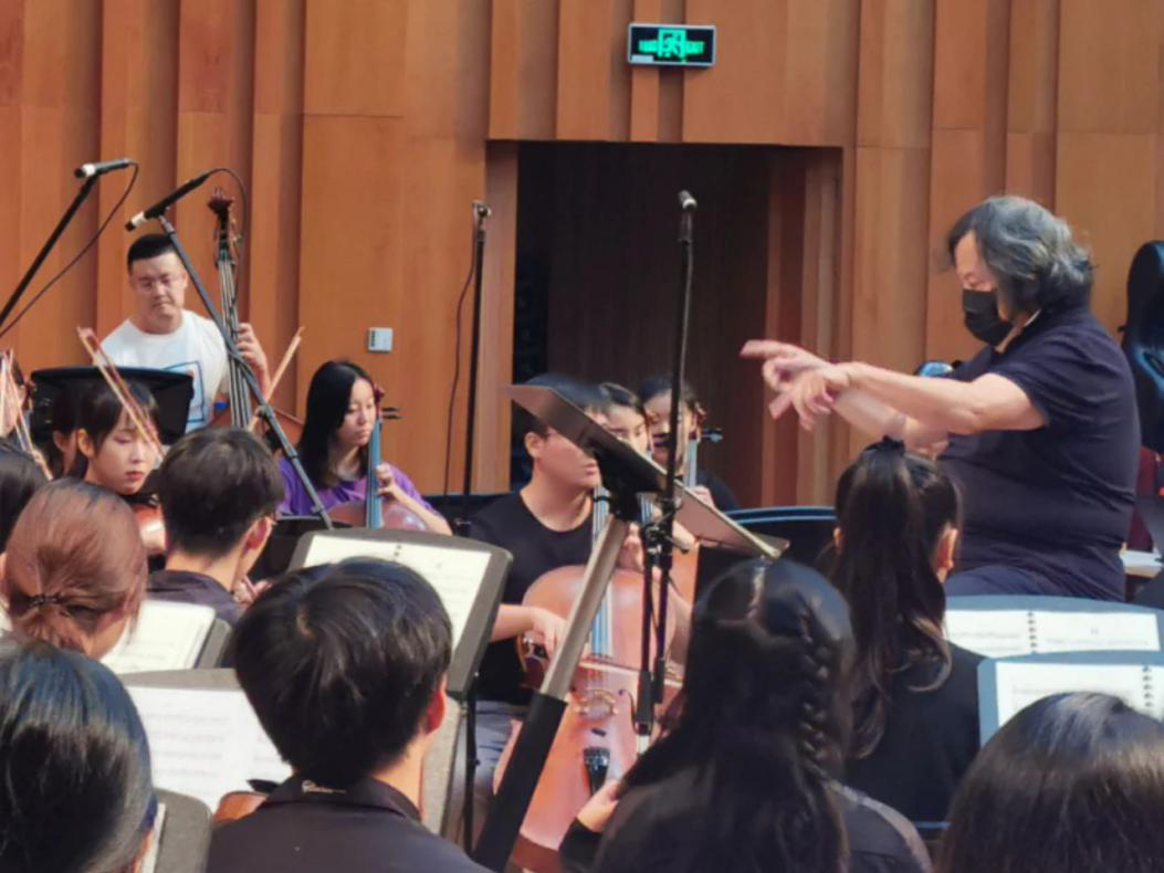 10月22日,著名指挥家汤沐海莅临我院音乐厅,指导交响乐团排练,陈舒华副院长陪同。