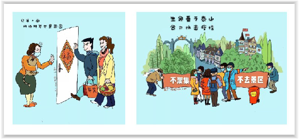 传画,现在正在准备印刷推广。高千一同学说:“寒假回家,我有了一次非同寻常的春节假期。疫情的消息铺天盖地而来,作为一名中国人,我也想为疫情防控献一份力,少一个新增病例,在前线的医生就更可能从死神手中拿回一条鲜活的生命。待在家看到各种新闻报道有人不听劝、不重视,我有些生气,就想用自己的方式去劝诫他们,让“父母”和“老人”都能牢牢记住疫情防控知识。