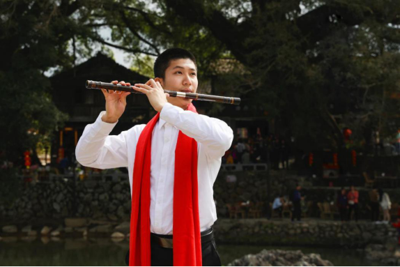 陈旻杰同学说:”去时寒冬恰萧疏,归时春意已盎然,待到今日君归处,十里山乡迎亲人。新冠肺炎疫情来势汹汹,我一路关注着这次疫情,虽然也曾为不断上升的确诊人数而感到担忧,但更多的是看到中国人民战胜疫情的决心。我从新闻中了解到全国各地一批批的医护人员逆行前往疫情最严重的湖北省,毅然投入这片没有硝烟的战场,我的内心是深受触动的。疫情暴发期间正值春节,这些医护人员们暂别家人,不辞辛苦的默默奉献着,可谓是“无为恩怨儿女语,疆场勇士轩昂行”!因此,当“战疫”迎来胜利,白衣战士们开始陆续凯旋之时,我萌生了利用我所学专业来向他们表达敬意的想法。作为一名行动派,我立即将想法付诸现实,特意挑选了《山村迎亲人》这首笛子独奏曲进行演绎,谨此献给奋战抗击新冠肺炎疫情的一线医护人员们,向新时代最可爱的人们致敬!“