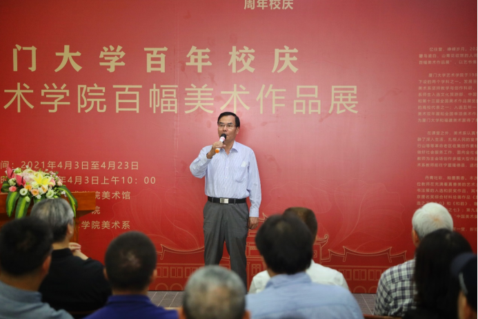 4月3日,喜迎厦门大学建校100周年之际,“厦门大学百年校庆艺术学院百幅美术作品展”在艺术学院美术馆盛大开幕。艺术学院老、中、青三代教师共携百余件作品,呈现各自在艺术领域的成就。厦门大学副校长杨斌,省文联书记处书记、副主席王来文,福建省美术家协会驻会副主席、秘书长赵胜利,厦门市文旅局一级调研员叶细致,厦门市美术家协会主席、艺术学院张立平教授先后致辞,艺术学院党委书记张必华出席开幕式,艺术学院院长刘赦教授致欢迎辞。开幕式由艺术学院美术系系主任陈金华主持。