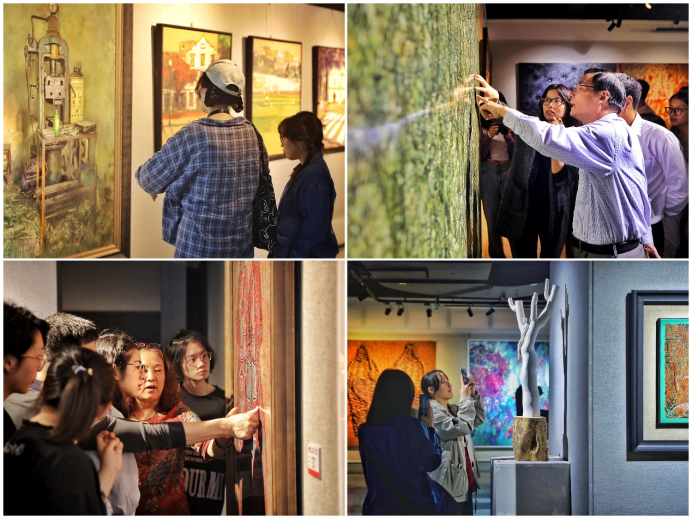 丹青吐彩,翰墨飘香。本次展览展出艺术学院美术系教师近年最具代表性作品,分第一展厅和第二展厅展出,“老中青”三代美术作品同台亮相,精品荟萃,参展作品类型门类齐全涵盖国画、油画、漆画、雕塑、版画、综合材料绘画、陶艺和书法等。据美术系副主任杨寒松老师介绍,这是艺术学院美术系有史以来最大型、最综合、最丰富、最高规格、最有作品力度的展览,在全省乃至全国高校中也是含金量较高的一次展出。