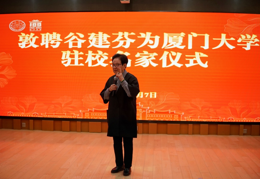 4月7日上午,敦聘谷建芬为厦门大学驻校名家仪式在艺术学院小音乐厅举行。
