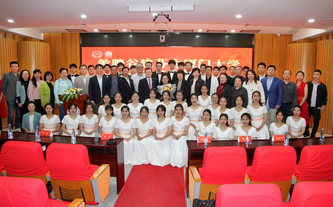 厦门大学校长张荣、人事处处长李军、宣传部副部长楼红英、艺术学院院长刘赦、学院党政班子成员、系所负责人和学院师生代表出席了仪式。艺术学院党委书记张必华主持仪式。