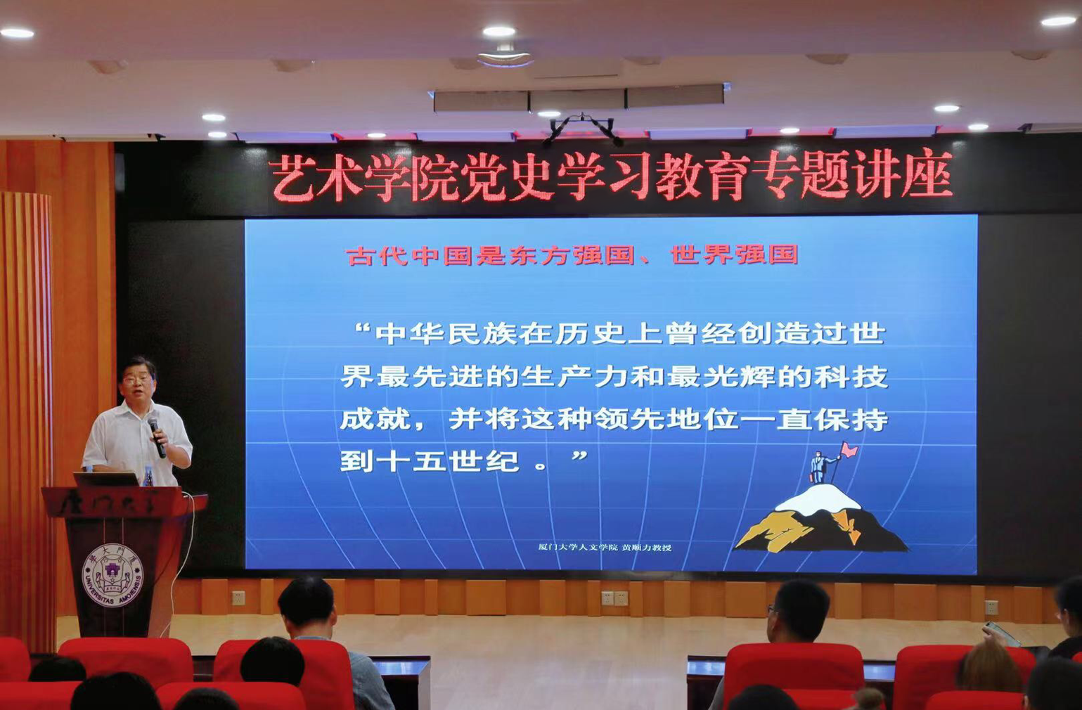 2021年5月17日,厦门大学艺术学院党史学习教育专题讲座在艺术学院小音乐厅举行。本场讲座由厦门大学人文学院历史系教授黄顺力主讲,讲座主题为《学史明理增信:近代中国的救国抉择与有中国特色社会主义道路的确立》,本场讲座由厦门大学艺术学院党委书记张必华主持,艺术学院全体师生党员参与讲座。
