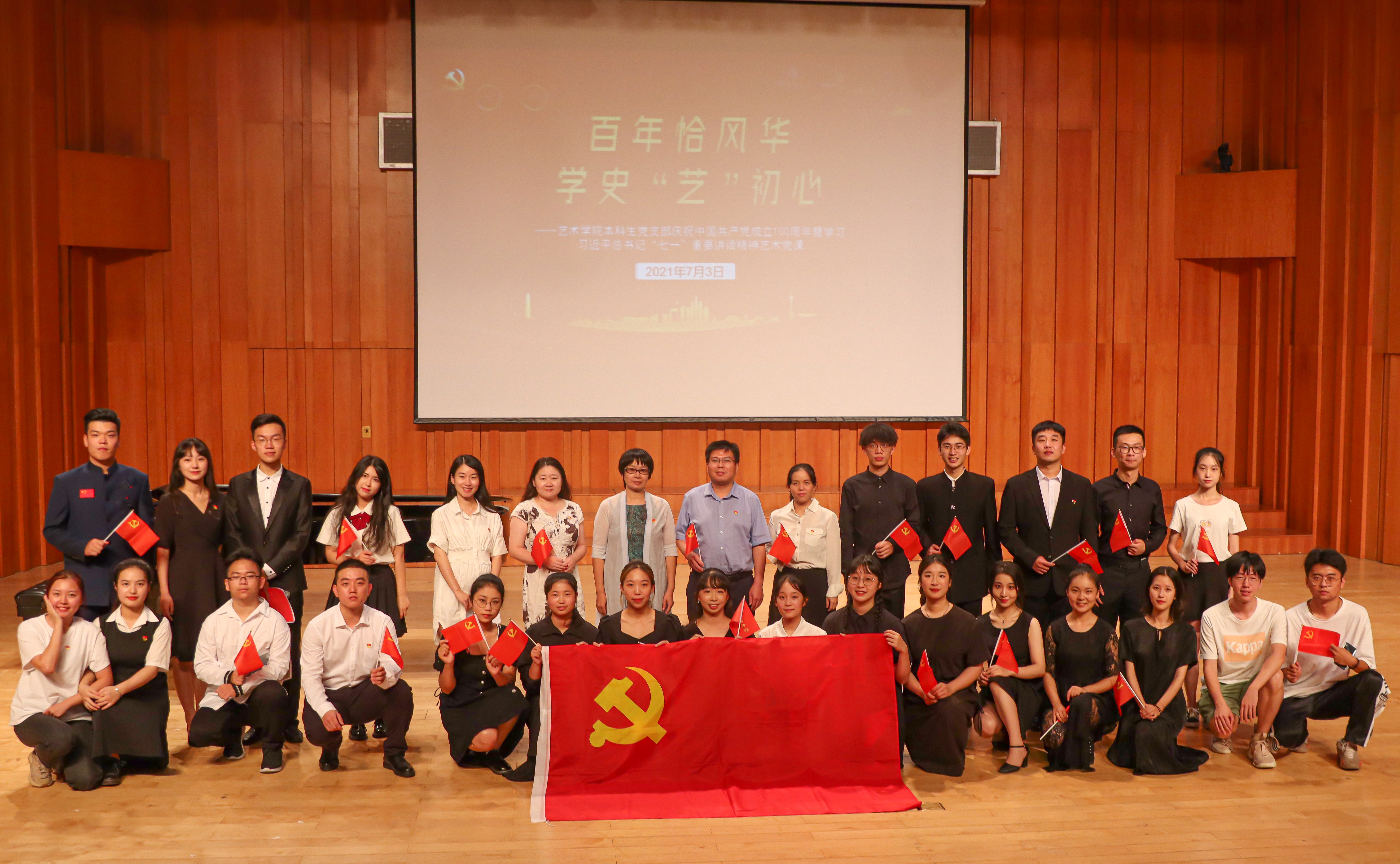 为响应党中央关于在全党开展党史学习教育的号召,7月3日下午,艺术学院本科生党支部“百年恰风华,学史‘艺’初心”庆祝中国共产党成立100周年暨学习习近平总书记“七一”重要讲话精神艺术党课在艺术学院音乐厅开讲。学校党委组织员、党建办副主任葛郝锐,艺术学院党委副书记王艺宏,团委副书记游璐昀、林轶凡,辅导员张秀丽、李锦泽莅临活动现场,与本科生党支部党员、入党积极分子一起回顾中国共产党100年的奋斗历程。
