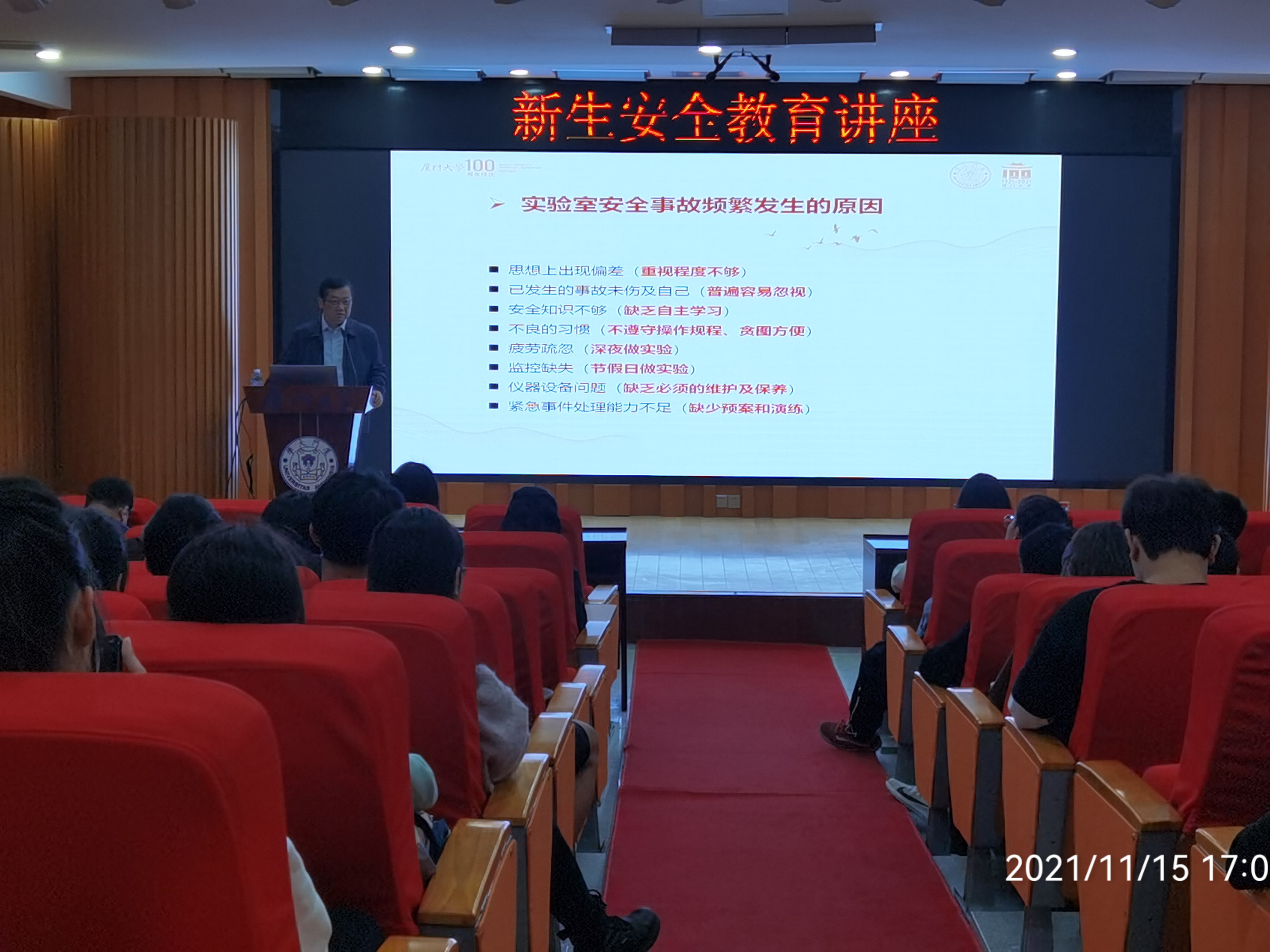 安全问题无小事, 2021年11月15日,一场别开生面、发人深省的新生安全教育讲座在艺术学院小音乐厅举行。校实验室与设备管理处处长施芝元教授,秉持着“安全高于一切,责任重于泰山”的理念,为艺术学院美术系全体新生上了一堂生动的安全教育课。