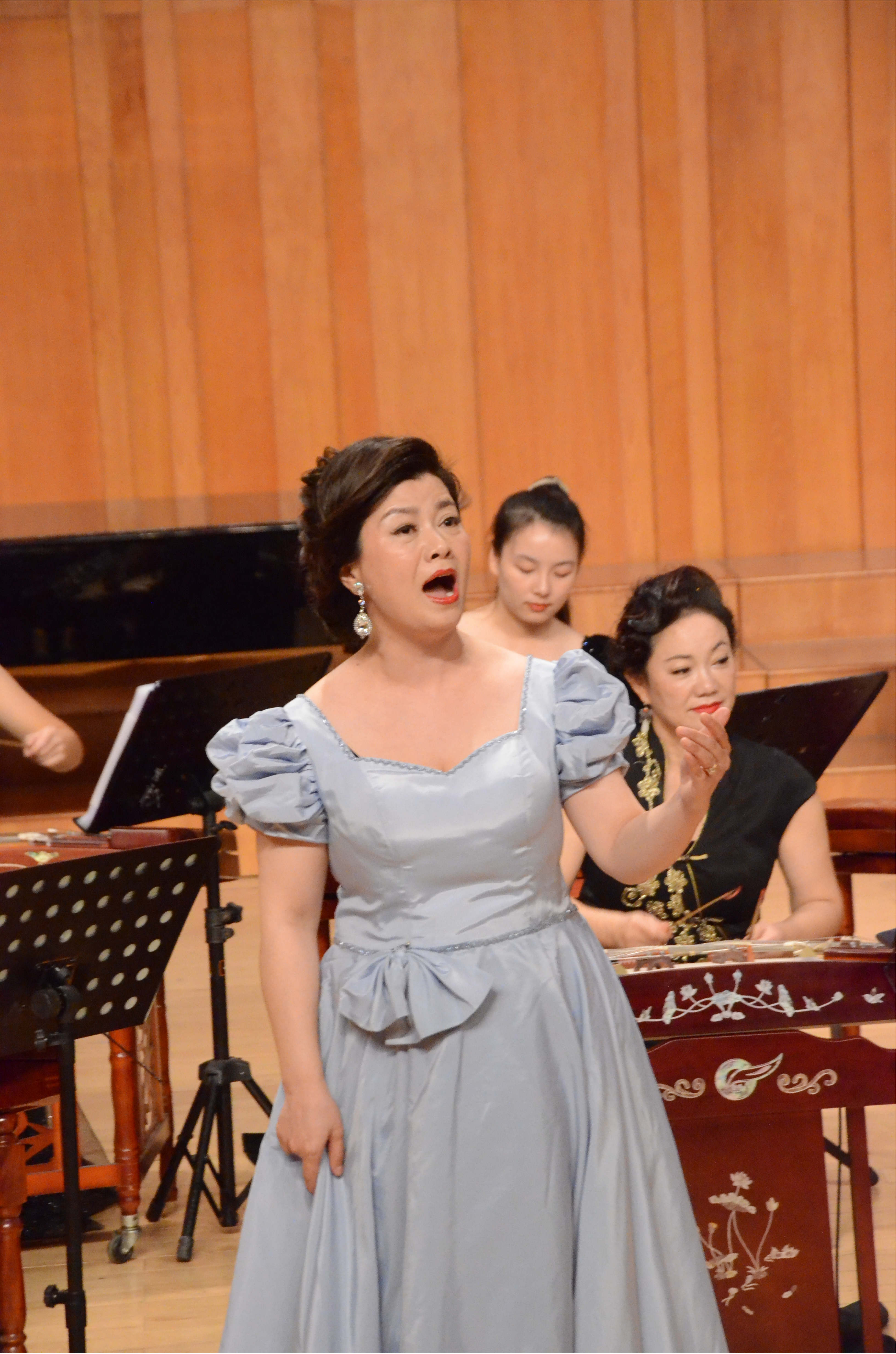 “音韵绵长”篇章——与观众一同分享中国传统音乐带来的美妙神韵。在课堂教学中,守正创新,赓续发展,学习传统是一个十分重要的基础课题。因此本次音乐会“音韵绵长”篇章特意选取了四首经典的传统乐曲:四川扬琴传统乐曲《将军令》、广东扬琴传统乐曲《平湖秋月》《旱天雷》、东北扬琴传统乐曲《苏武牧羊》、古曲《春江花月夜》。其中,赵艳方教授演奏的《苏武牧羊》,使观众们都被东北扬琴吟柔滑颤的独特韵味所感染,赞许纷纷、掌声如潮。