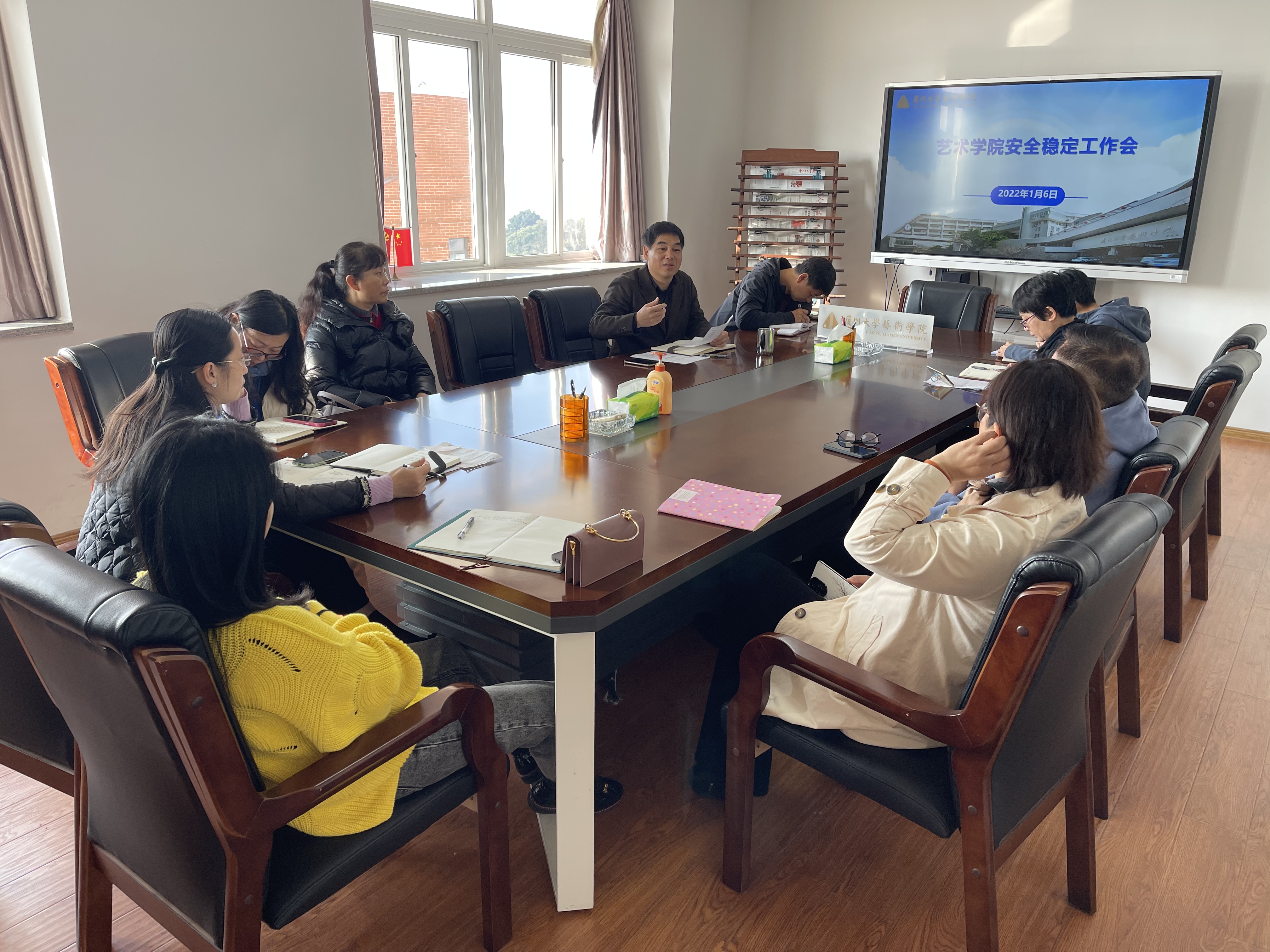 2022年1月6日上午九点,艺术学院召开疫情防控暨安全稳定工作会,传达学校安全稳定会议精神,布置期末寒假安全稳定相关工作。院系领导、院办、系行政秘书、实验技术人员、辅导员、物业负责人等参加会议。会议由学院党委副书记刘晓峰主持。