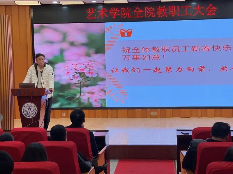 2022年1月11日下午,艺术学院全体教职员工在小音乐厅济济一堂,回顾2021年度的工作,并对2022年的工作进行了展望。