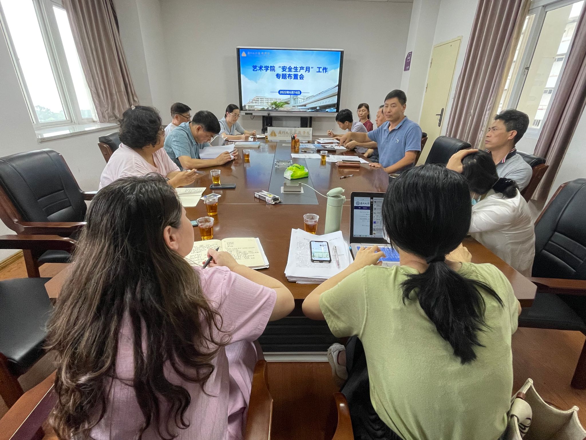 6月16日下午,艺术学院“安全生产月”工作专题布置会在411会议室举行。院党委书记张必华、副书记刘晓峰、副院长刘涛、系主任、院办公室行政人员、系行政秘书、实验技术人员、辅导员等出席会议,会议由刘晓峰副书记主持。