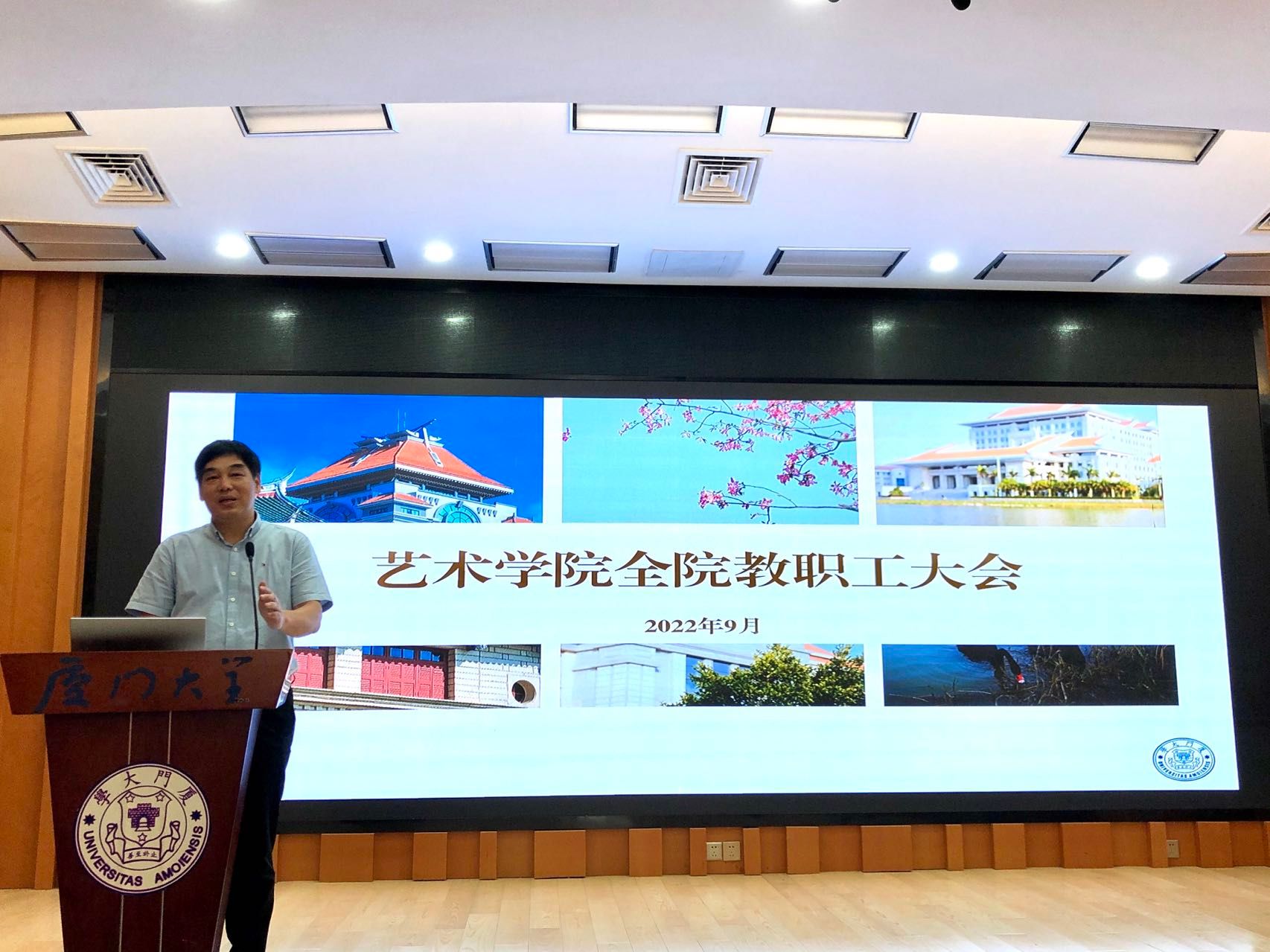 9月21日下午,艺术学院秋季学期全院教职工大会在小音乐厅举行。大会高效、务实,总结了学院近期工作情况,明确了新学期工作重心,强调了工作纪律、提振了教师精气神。院党委书记张必华、院长刘赦等学院党政领导班子成员,全体教学、行政人员等共计100余人参加会议。