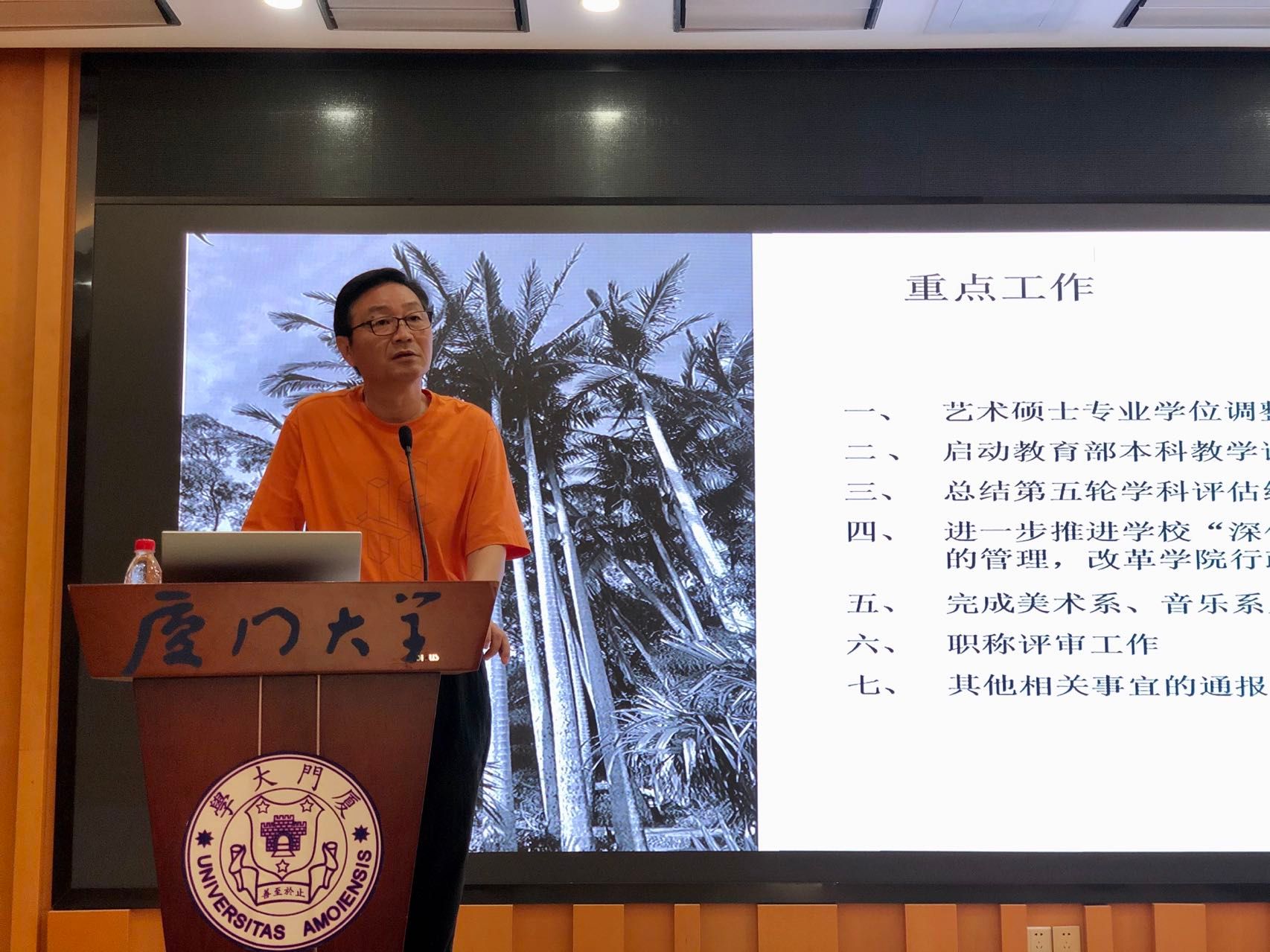 院长刘赦强调新学期重点工作。他通报了艺术硕士专业学位调整情况,指导迎接教育部本科教学评估,总结第五轮学科评估情况等,指出,要进一步推进“深化放管服,推进学院目标责任制”的管理,改进学院行政工作的作风。刘赦肯定了音乐系、美术系本届领导班子的工作业绩,希望广大年轻教师更加主动担当作为,接续奋斗,在加强学院内涵建设,推动高质量发展的进程中贡献力量。