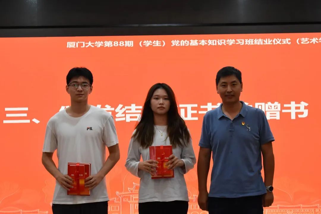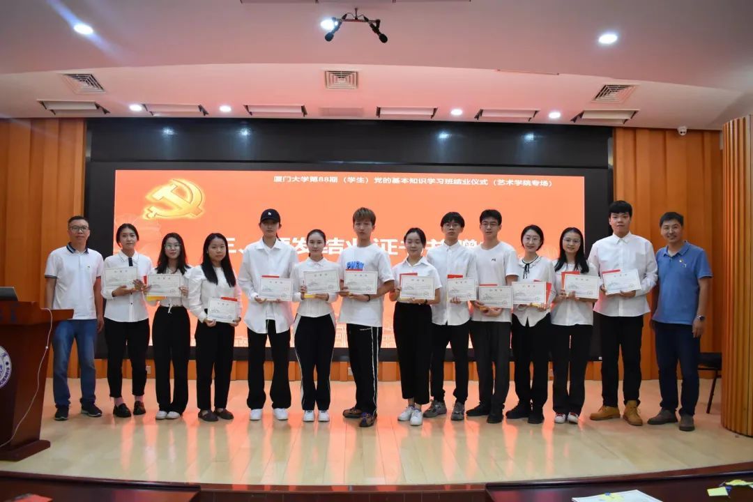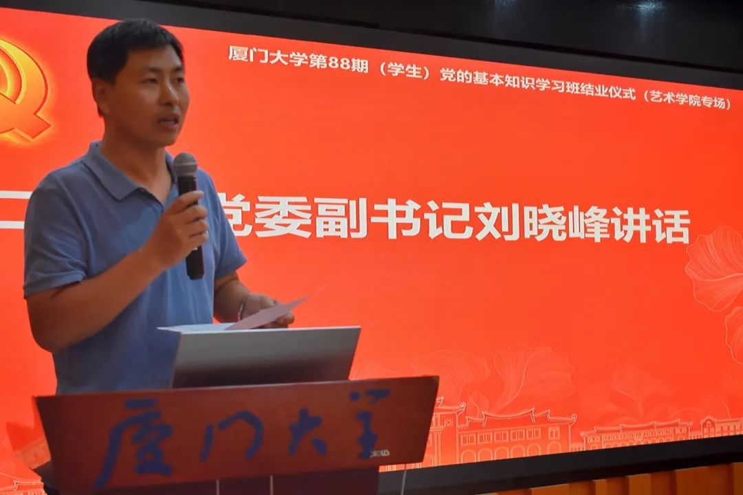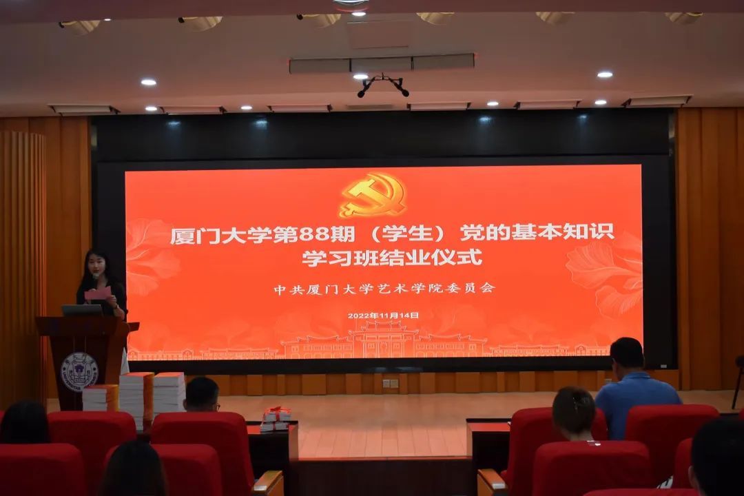 2022年11月14日中午,厦门大学党委党校88期(学生)党的基本知识学习班(艺术学院专场)结业仪式在艺术学院小音乐厅顺利举办。艺术学院党委副书记刘晓峰、院团委书记陈国全以及全体本期党校学员参加了结业仪式,院党务秘书林轶凡主持仪式。