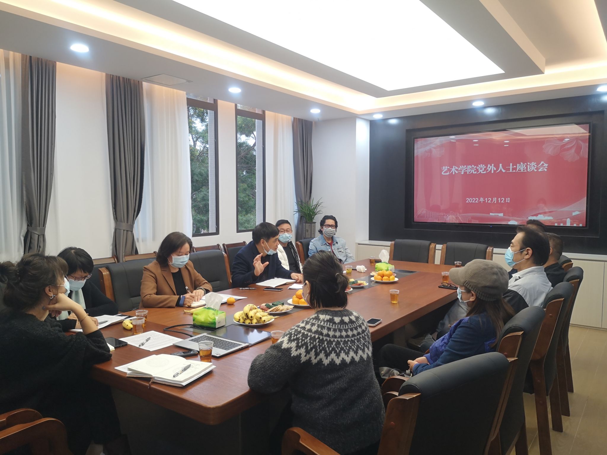 12月12日下午,艺术学院党外人士座谈会在学院多功能会议室召开。院党委书记张必华、院长刘赦等院领导班子与在职在岗的7位党外人士就“凝聚共识,推进学院事业发展”进行座谈,校统战部副部长秦红梅莅临座谈会。