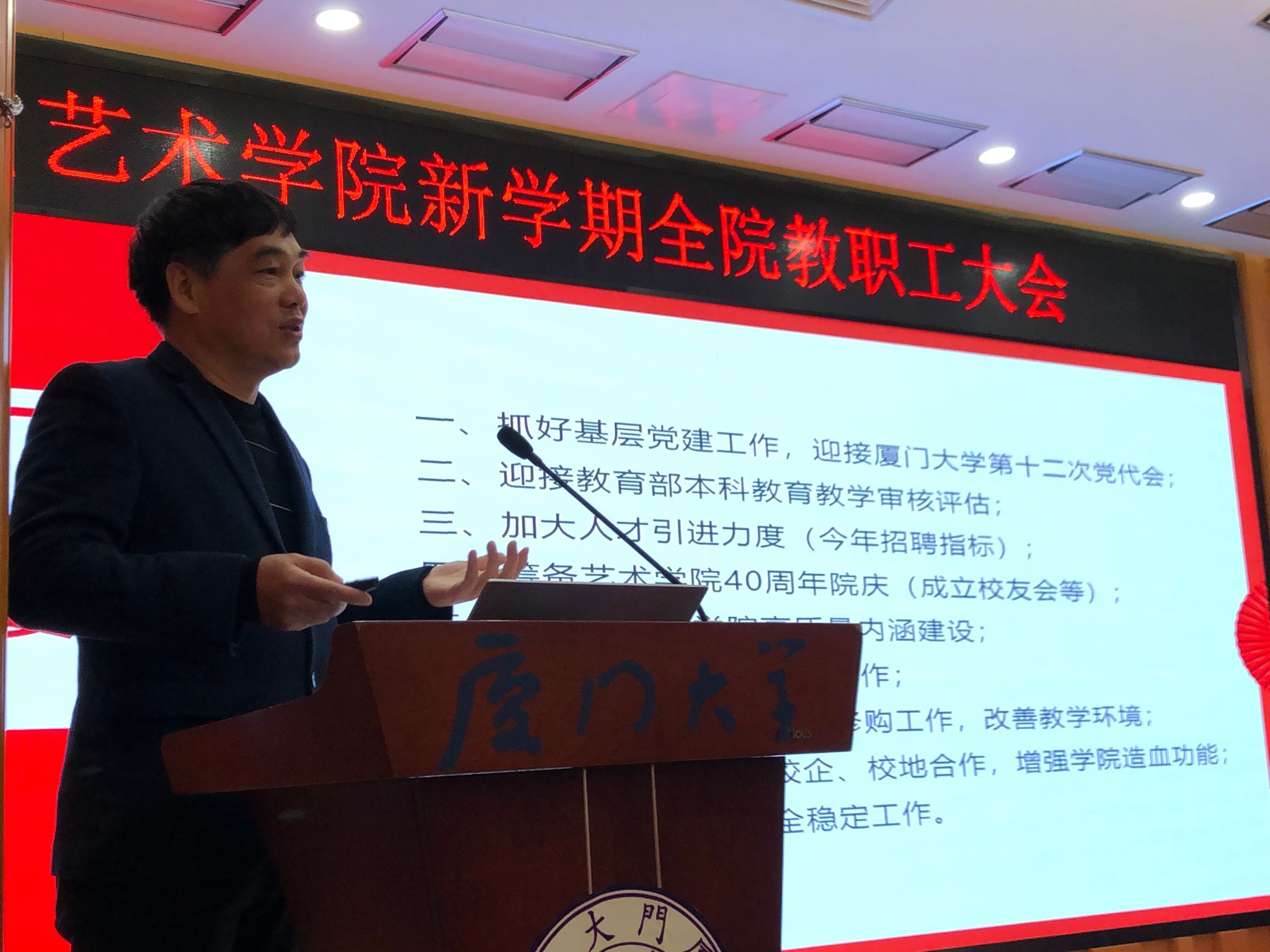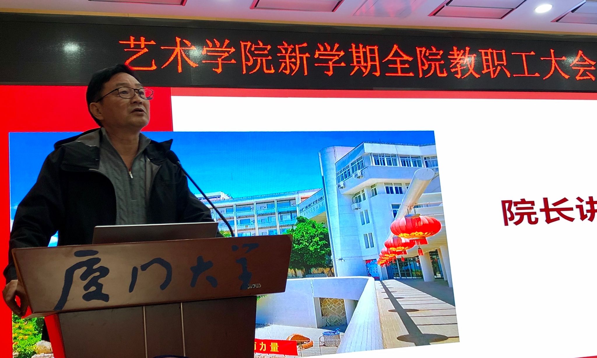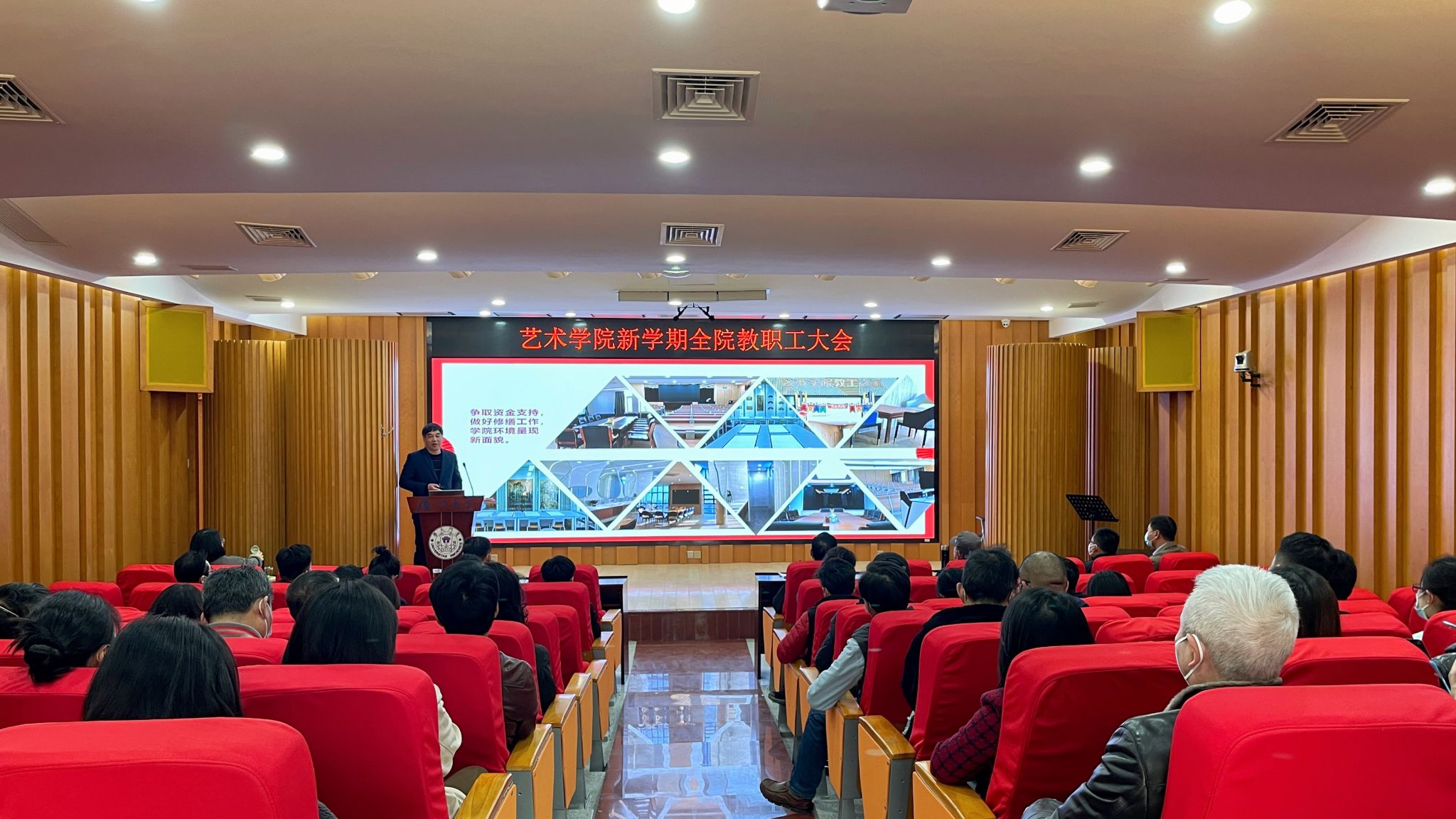 2月20日下午,艺术学院新学期全院教职工大会在小音乐厅顺利举行。大会总结了学院2022年度主要工作,分析存在主要问题,并就2023年重点工作进行部署。院党委书记张必华、院长刘赦等学院党政班子,基层党建联络员林永生,全院教职员工近100人出席大会。