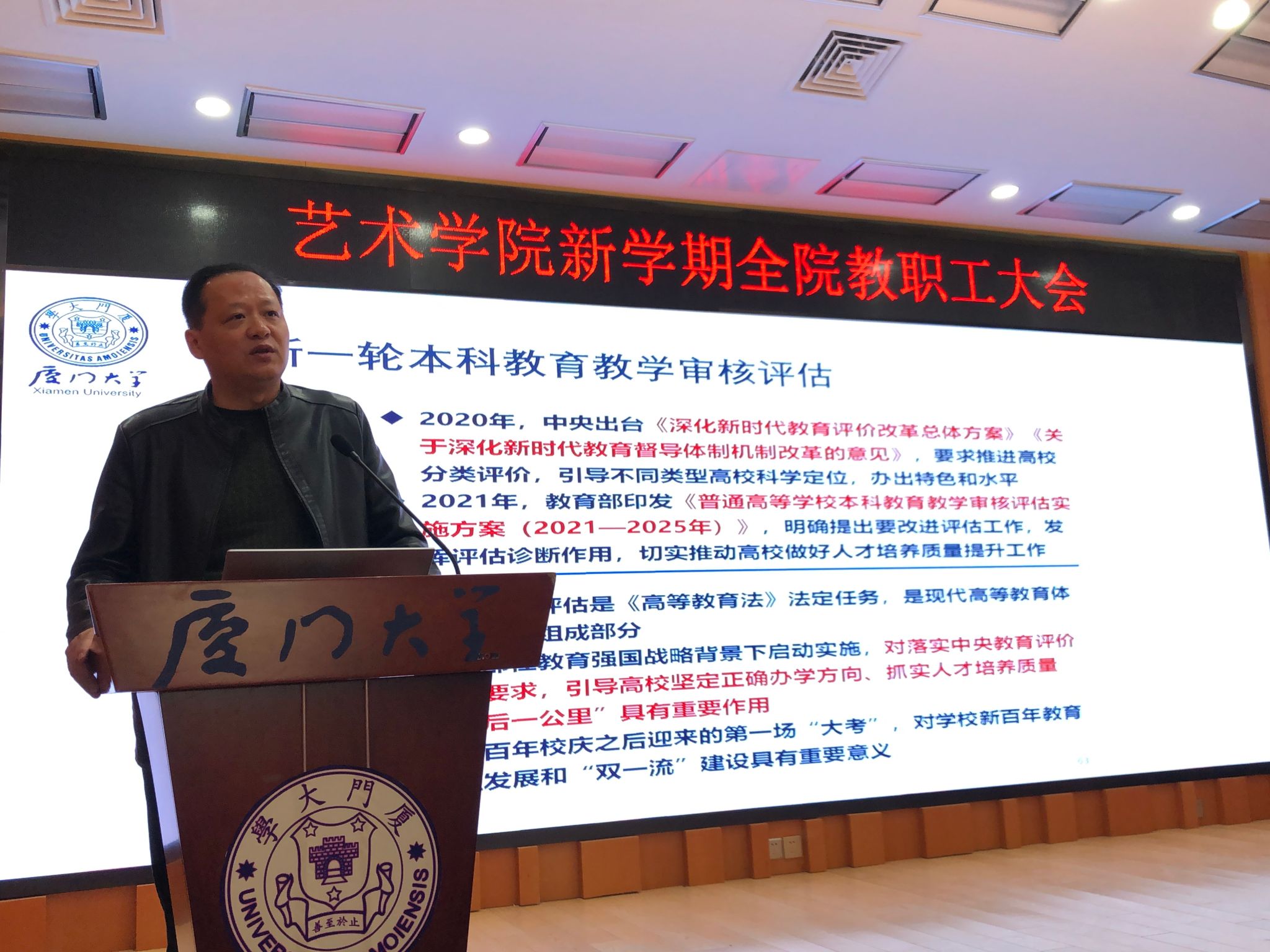 随后召开本科教育教学审核评估推进会,副院长刘涛通报本科教育教学审核评估工作情况,他向全体教职员工阐明新一轮及教育教学审核评估背景、原则,介绍了实施方案、指标体系等具体内容,并就时间安排、目标任务等进行安排动员。