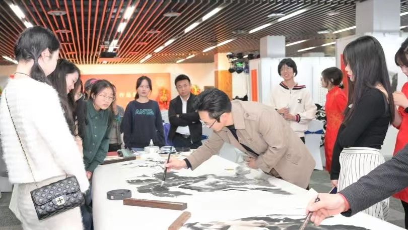 笔走黄宣气恢弘,墨晕白纸意深长。开幕剪彩仪式后,来宾们兴致勃勃地开始观展。大家或一人静赏,低声赞咏,若有所思;或结伴而行,一同雅鉴,指点交谈。参观者都沉醉于此,感受艺术之美,陶冶审美情趣。兴起处,各位书画名家还现场挥毫作画,现场一片书香墨香,观者赞叹不绝。