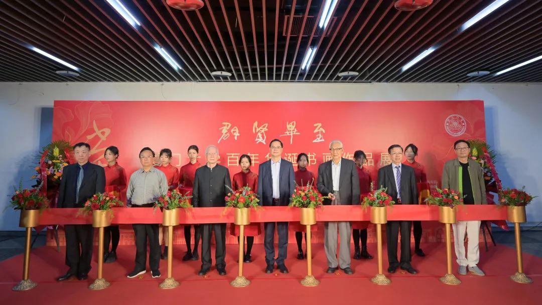 弦歌不辍,群贤毕至。4月2日,“群贤毕至——厦门大学百年华诞书画作品展”在科艺中心正式开幕,100余幅厦大校友创作的书画作品争奇斗妍,令观众们一饱眼福。厦门市委统战部常务副部长、厦门市侨办主任、一级巡视员何秀珍,厦门大学原党委书记吴宣恭,原常务副校长、校友总会荣誉理事潘世墨,原副校长、校友总会副理事长詹心丽,原党委副书记、校友总会副理事长赖虹凯,旅港校友会监事长林劲,以及来自香港、福州、泉州、厦门等地书画名家、校友代表,厦门大学党委宣传部、校友总会、教育发展基金会秘书处、档案馆/文博管理中心、艺术学院等单位负责人、师生代表百余人共同参加书开幕仪式。仪式由校友总会秘书长张伟主持。