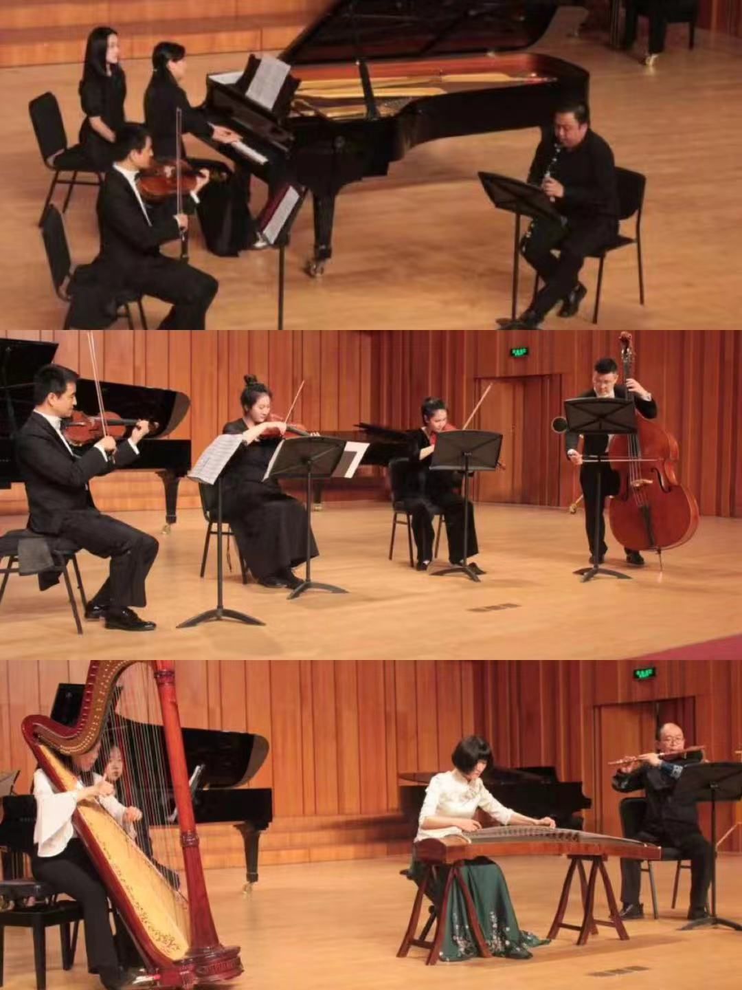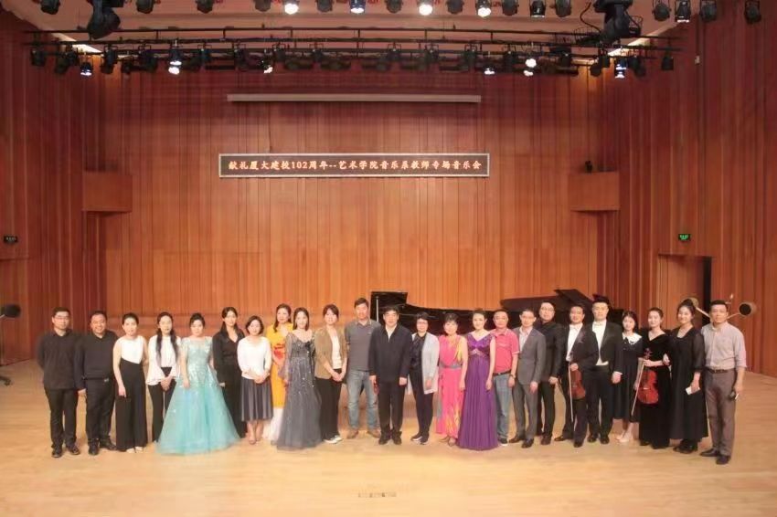 现场既有声乐演唱,陶笛、二胡独奏,又有竹笛、古筝合奏,钢琴五重奏、弦乐四重奏等等,既有《蝶恋花》、《鹧鸪飞》等中国曲目,又有《探戈的历史》、《华尔兹》等古典曲目。老师们用满怀深情,奉献了一场高水平的演出,展现的不仅是艺术学院的教育教学水平,更是新时代厦门大学的精神风貌,歌颂建校以来以来取得的伟大成就。