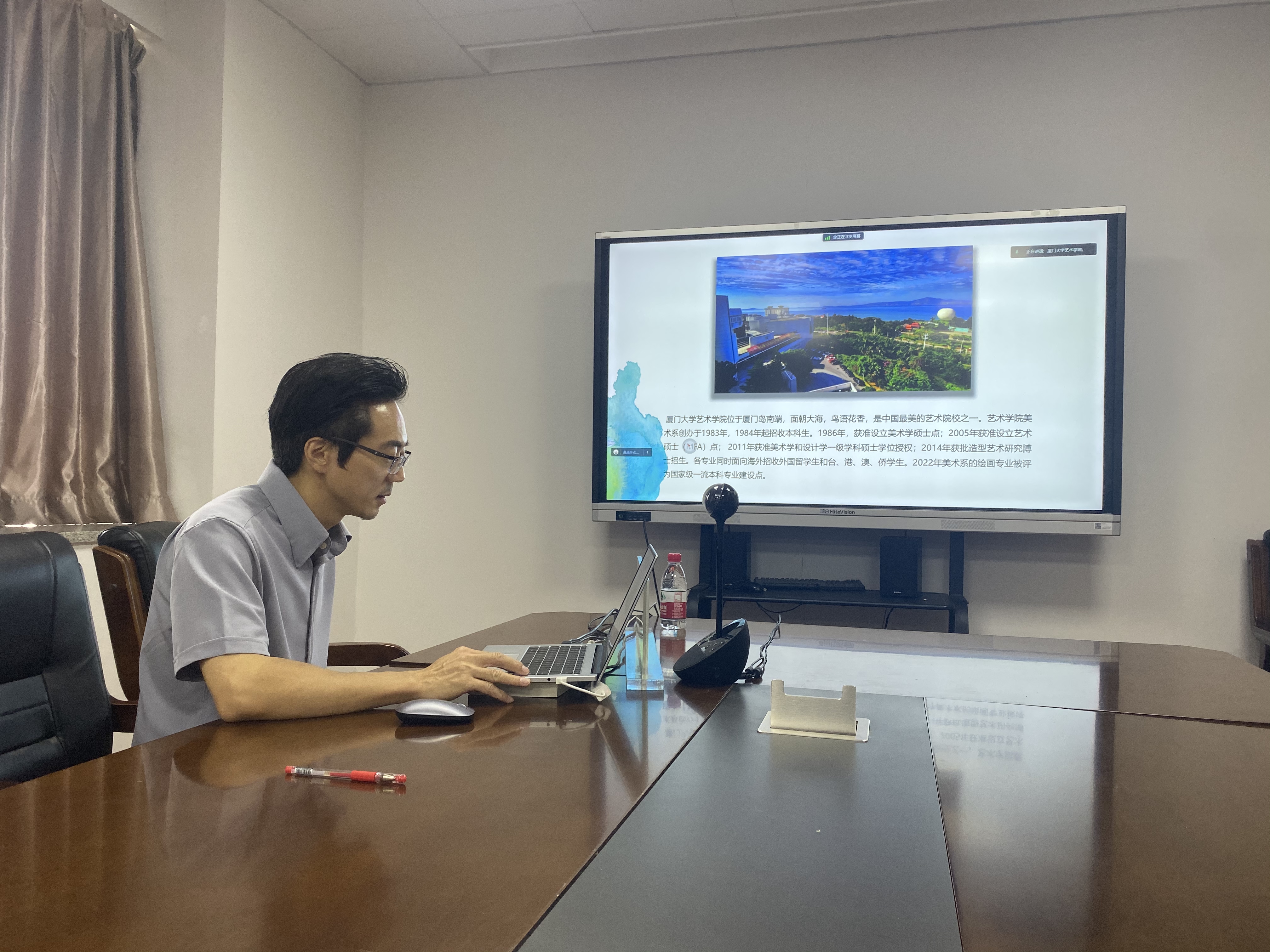 接下来 ,美术系主任方广智教授介绍了美术系的基本概况并简要回顾了其发展历程。随后,基于我院近年学科体系、师资队伍以及学院在人才培养、展览竞赛、服务社会等方面取得的成果展示,方广智教授对美术系下设的中国画、油画、漆画、雕塑四大专业方向分别进行了细致介绍。厦门大学艺术学院美术系致力于通过以创作带动习作的教学模式、以研究生带动本科生的朋辈教学氛围和以展览促教学的激励模式培养创新型、专业化的艺术人才。学院师资力量的充沛展现了艺术学院高度的专业性,中国画、漆画、油画、雕塑多领域携手共建体现了厦大艺院教学的多元综合性;教学与科研成果的丰硕反映了艺院强大的育人能力。