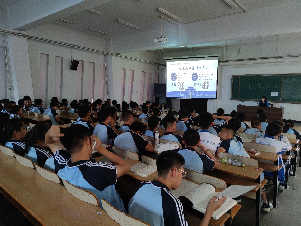 授牌后,俞梦烨和张颢在锡林浩特六中和赤峰二中以PPT报告和宣传视频相结合的方式为学子们全方位的展示了厦门大学。学子们展现出极高的热情和向往,互动环节现场气氛热烈。