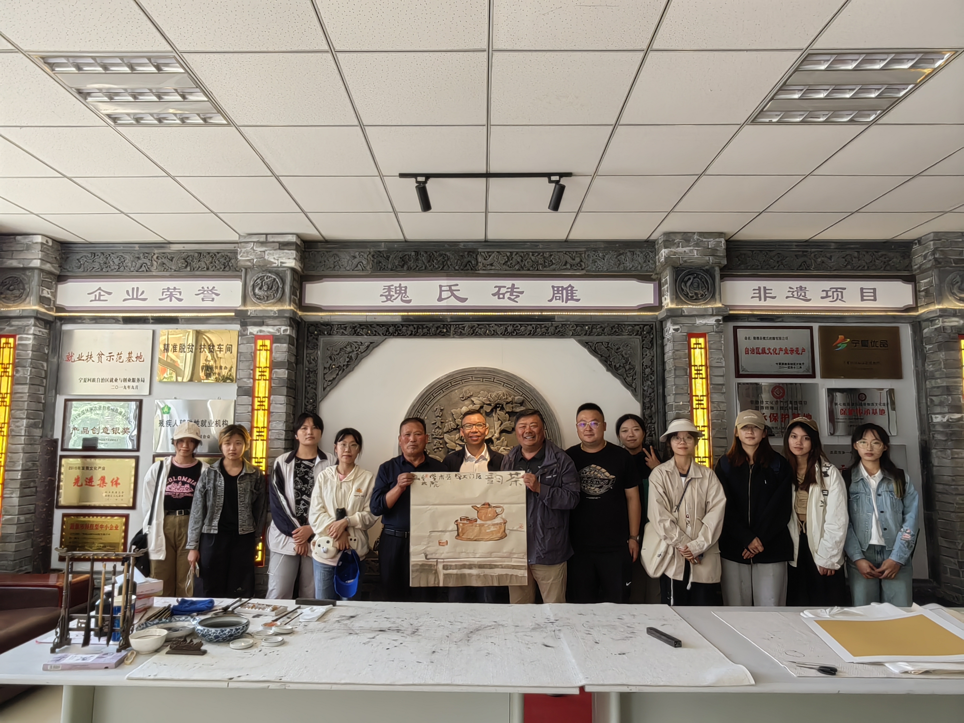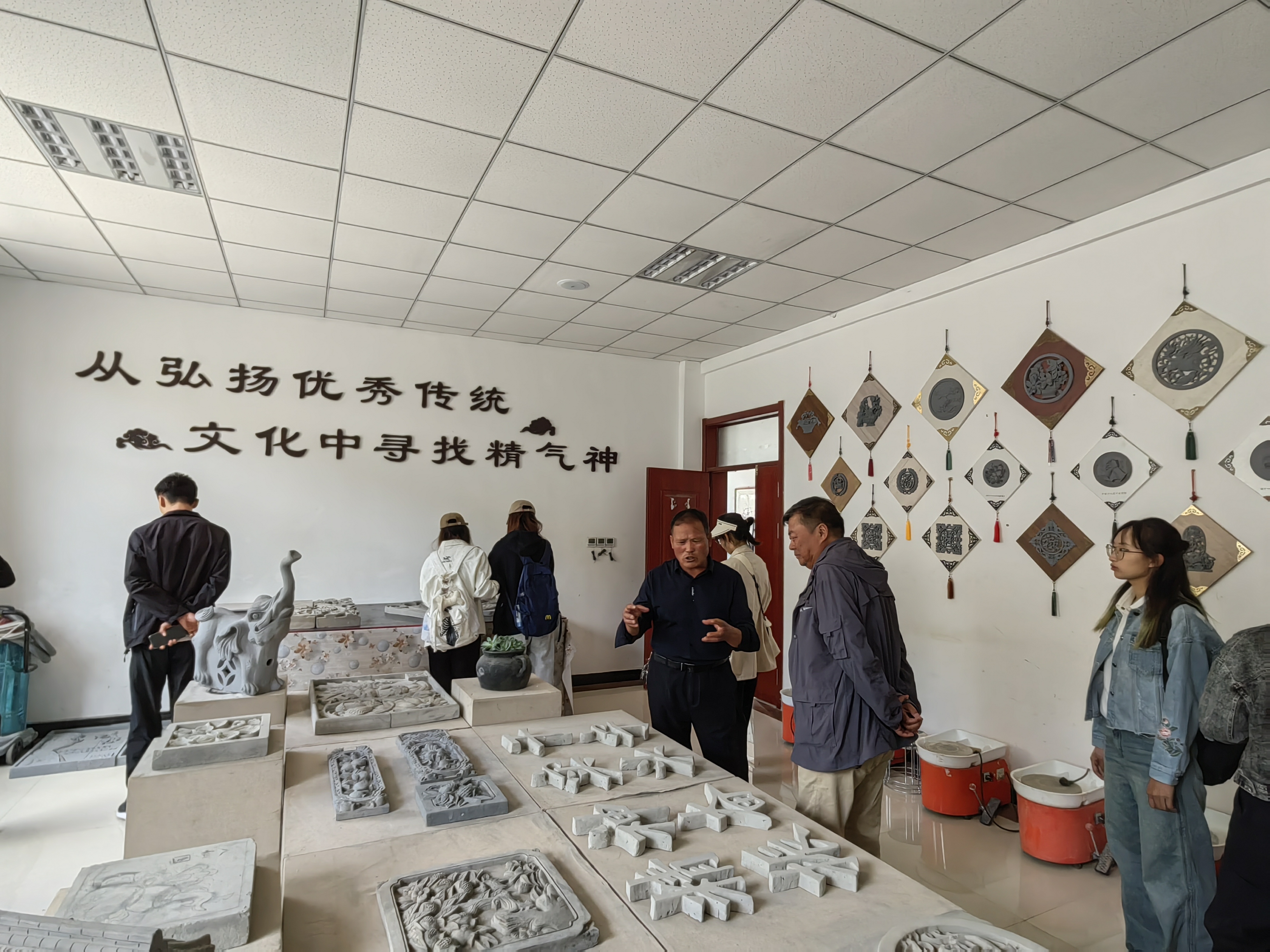 实践队专程前往魏氏砖雕展示馆参观,并与魏氏砖雕第四代传承人,也是国家级非遗项目代表性传承人卜文俊先生进行深度交流。卜文俊一边向实践队介绍砖雕历史,一边同大家研讨砖雕的工艺制作和艺术价值。他介绍,让青砖成为艺术品的过程,要经历选土、配料、酿泥、捏制到雕刻、建窑、烧制等各道工序,融入阴刻、阳刻、浅浮雕、高浮雕、透雕等多种技法。他感慨,艺术的传承,既要遵循古法技艺,又需不断创新突破。这些对传统艺术传承保护的精辟看法得到了实践队师生的一致认可。实践队员还进入魏氏砖雕有限公司扶贫车间,实地查看和体验了捣泥、制砖、入窑等砖雕成型的劳动过程。大家纷纷表示,要立志学好艺术,坚持守正创新,努力让中华优秀传统文化和艺术在新时代焕新的生机和活力。