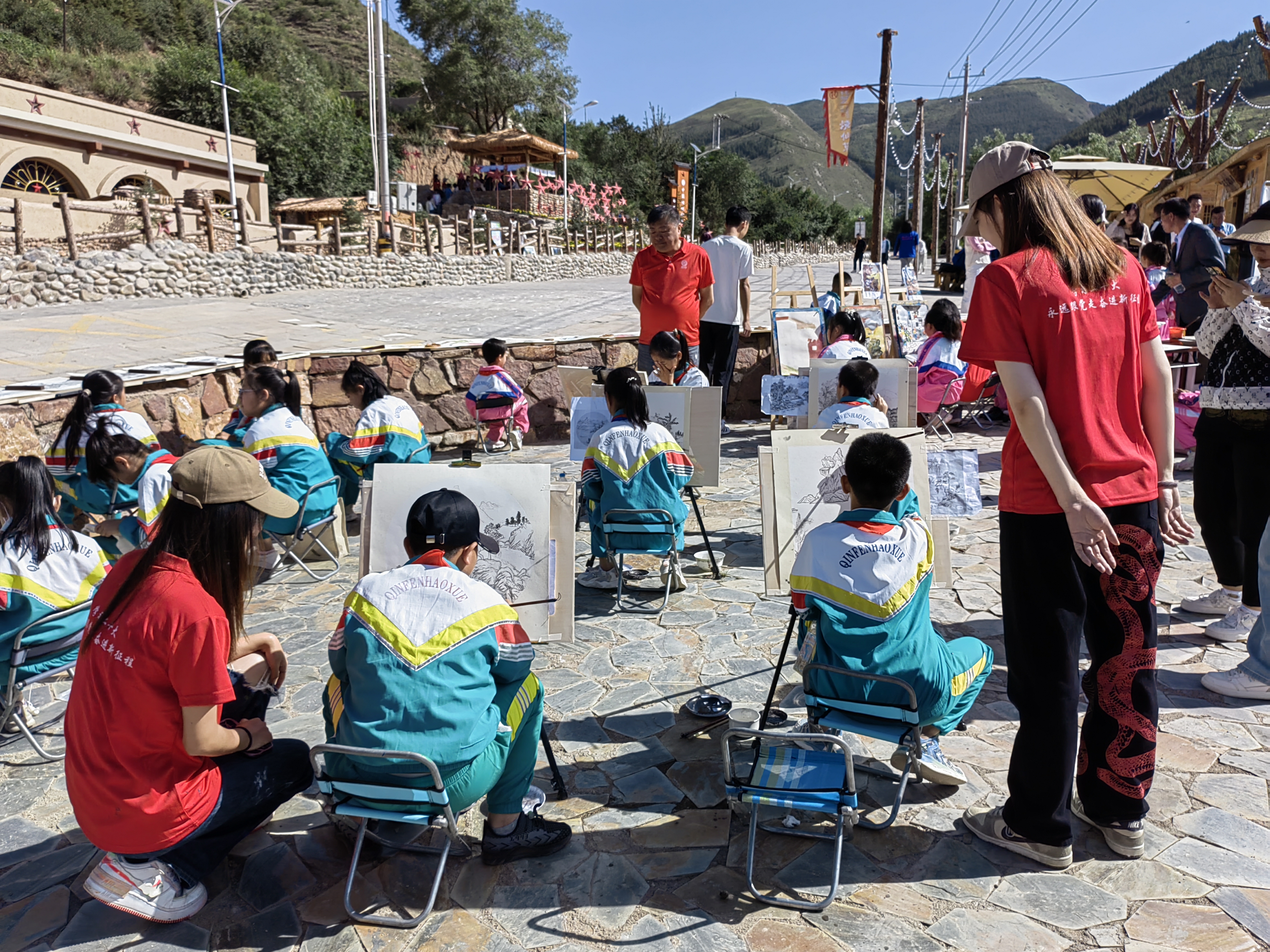 在艺术中感受快乐,在陪伴中收获成长。实践队在完成墙绘任务的同时,还充分利用间隙时间开展美育教学活动,为来自隆德第一小学等学校的20余名小学生进行风景写生、油画创作等美育培育,与隆德县工艺美术学校师生联合开展户外写生交流,用实际行动推动大中小一体化美育实践。