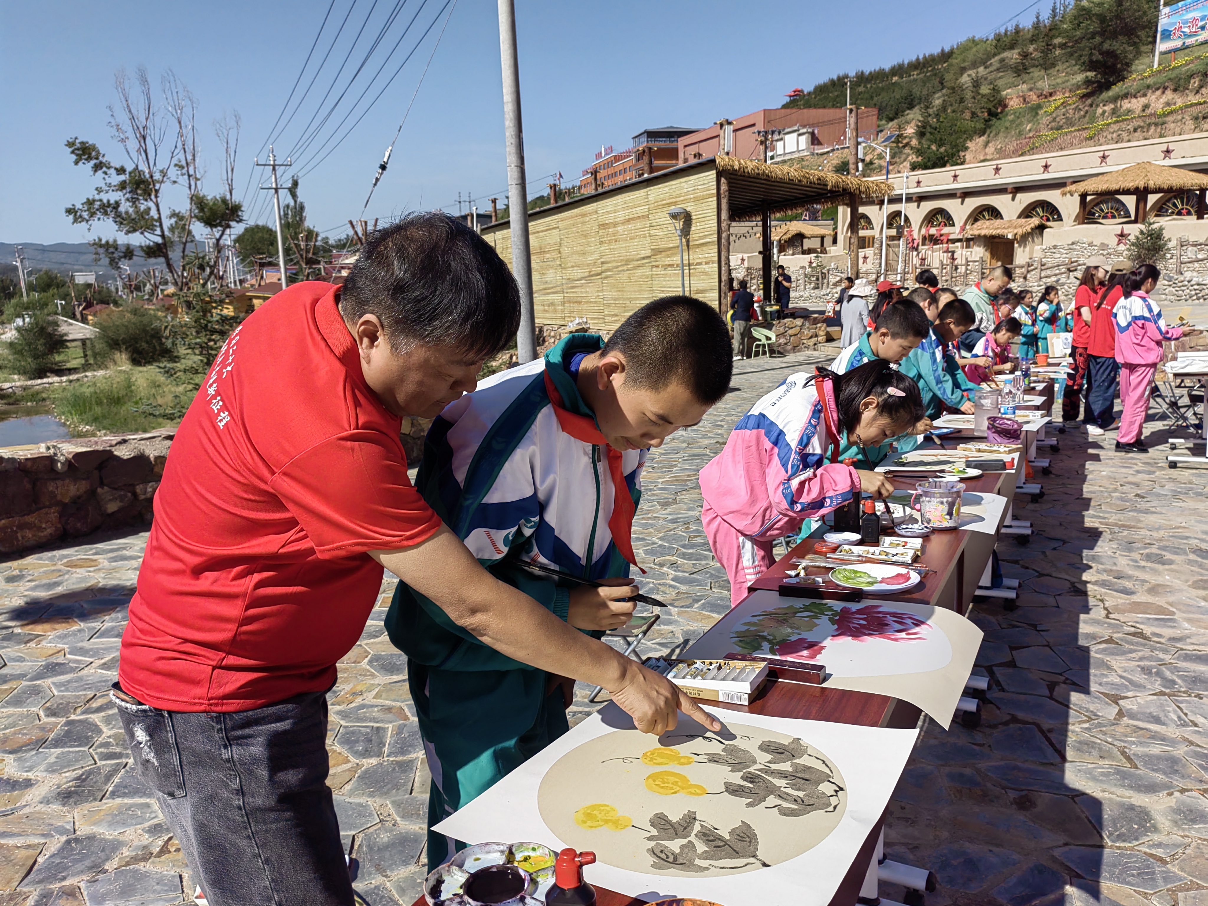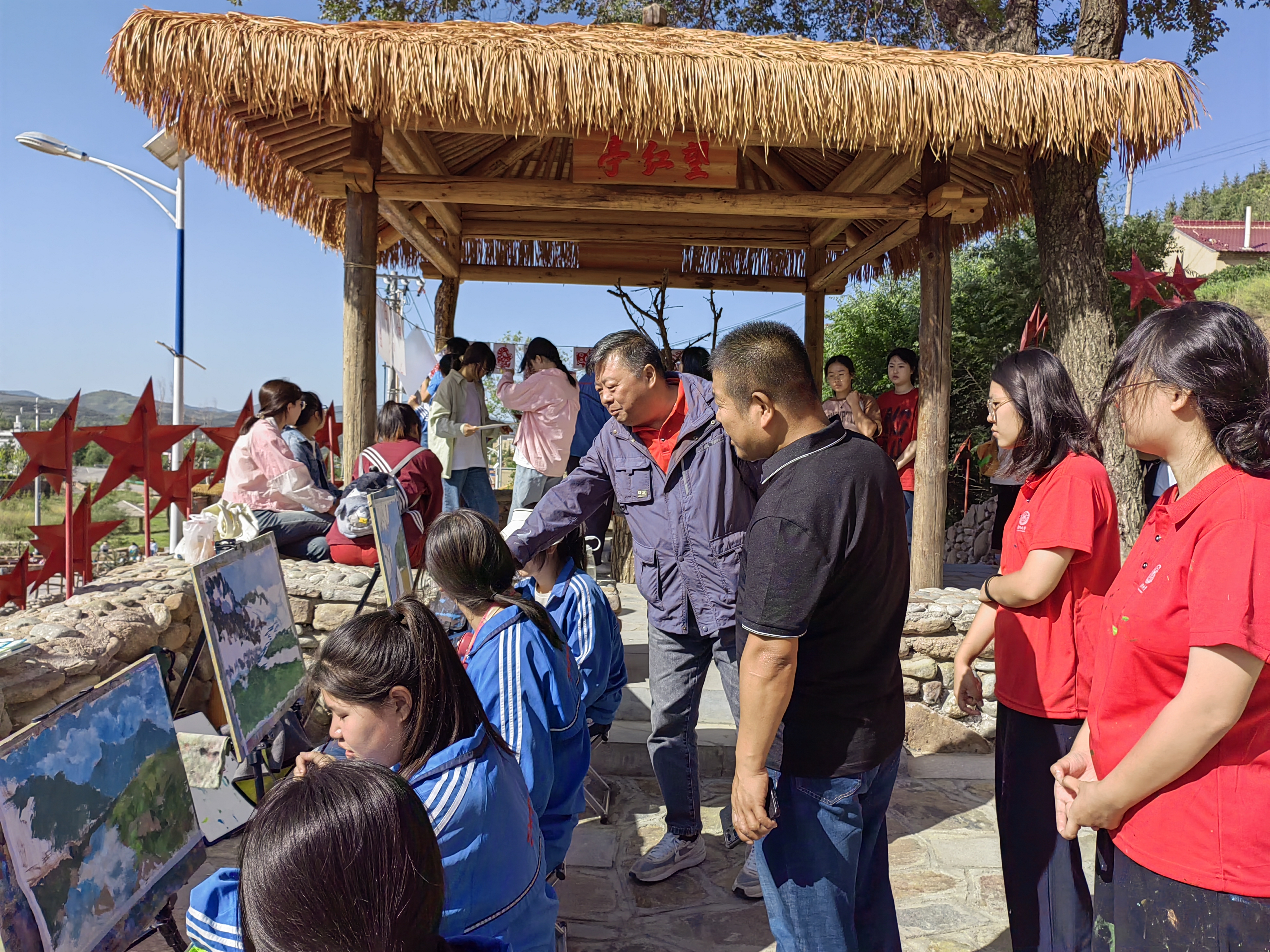 隆德县是中国书法家协会认定的“中国书法之乡”,民间书法艺术氛围较浓,但由于条件限制,中小学生的艺术教育中长期缺乏风景写生、油画创作等专业类师资和相应培训,而这恰好是实践队专业指导老师杨寒松教授的专攻领域,也是实践队成员的学习领域。为此,实践队主动与当地中小学联系对接,发挥实践队师生专长,为中小学生开设油画创作基础讲义课程,并将风景写生课搬到了位于六盘山脚下的城关镇杨家店红军村。“六盘山上高峰,红旗漫卷西风。”六盘山是长征的胜利之山,也是红色之山。将美育课堂开到红色山脚,不仅提高了中小学生美术创作能力,更在学生心中播下了红色艺术的种子,实现了专业能力和政治能力的双向提升。
