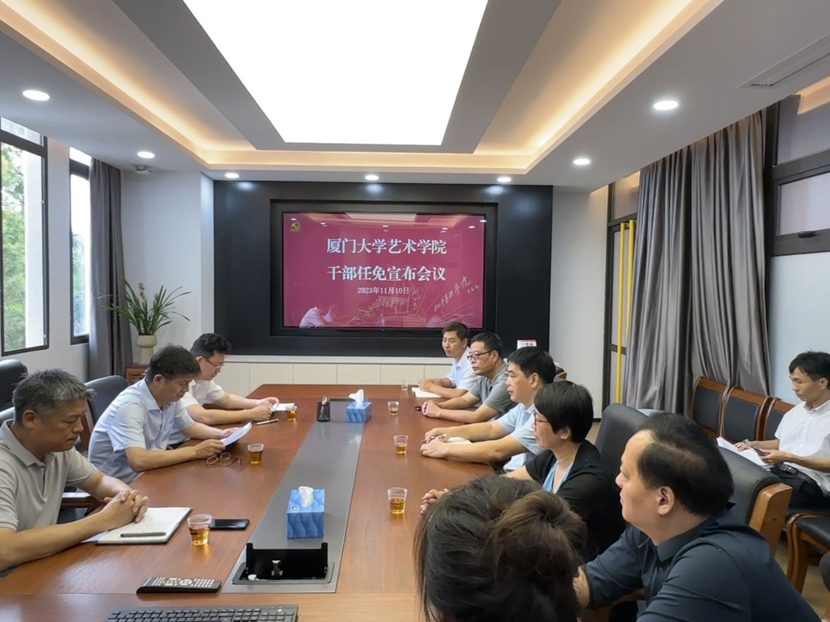 11月10日上午,校党委在艺术学院多功能会议室召开艺术学院干部任免宣布会议,校党委副书记徐进功出席,校党委常委、组织部部长、统战部部长孙理主持。艺术学院党政领导班子成员、系负责人、党支部书记、科级及以上干部、辅导员等参加会议。