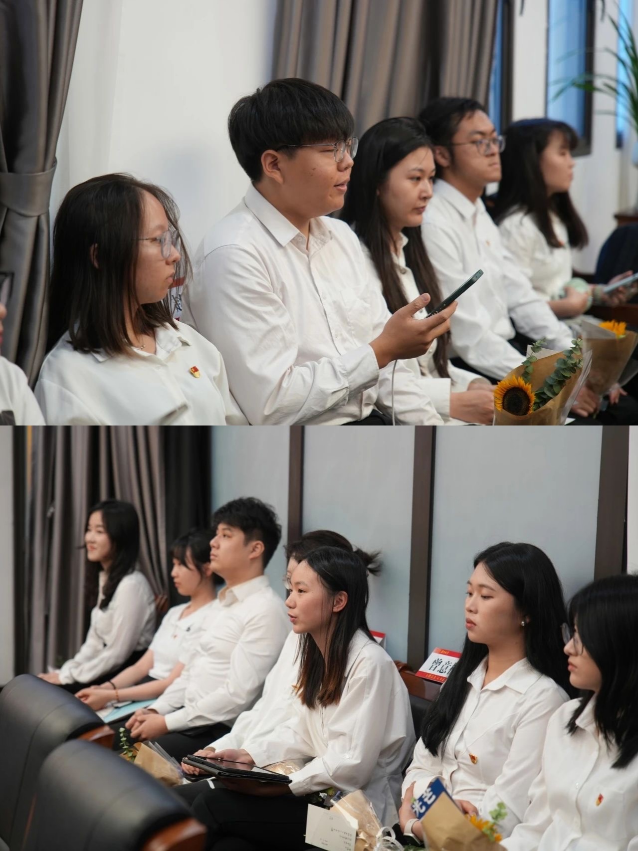 胸怀千秋伟业,恰是青春芳华。优秀毕业生党员代表赖培俊、周鑫柯同志先后结合工作感悟,汇报了自身的“成长答卷”,并畅谈对未来人生的规划和期望。谢婷婷寄语同学们“艺”气风发,前程似锦。