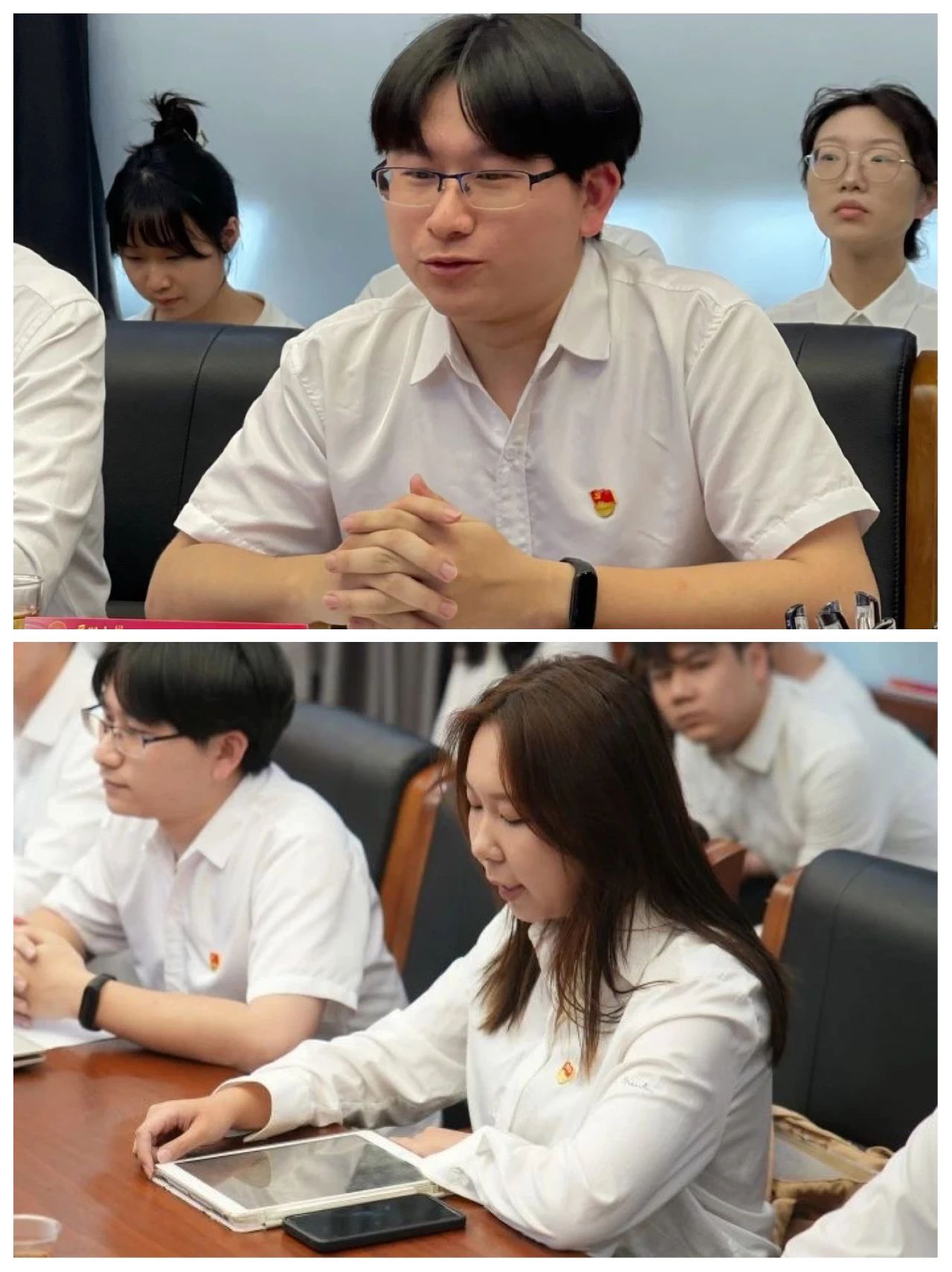 优秀毕业生党员代表林颖菁、边城池两位同志分享了各自的入党初心故事和支教经历,回忆了曾经在入党申请书中写下的承诺与誓言,将牢记初心与使命,以坚定的信念走向基层、走向社会。