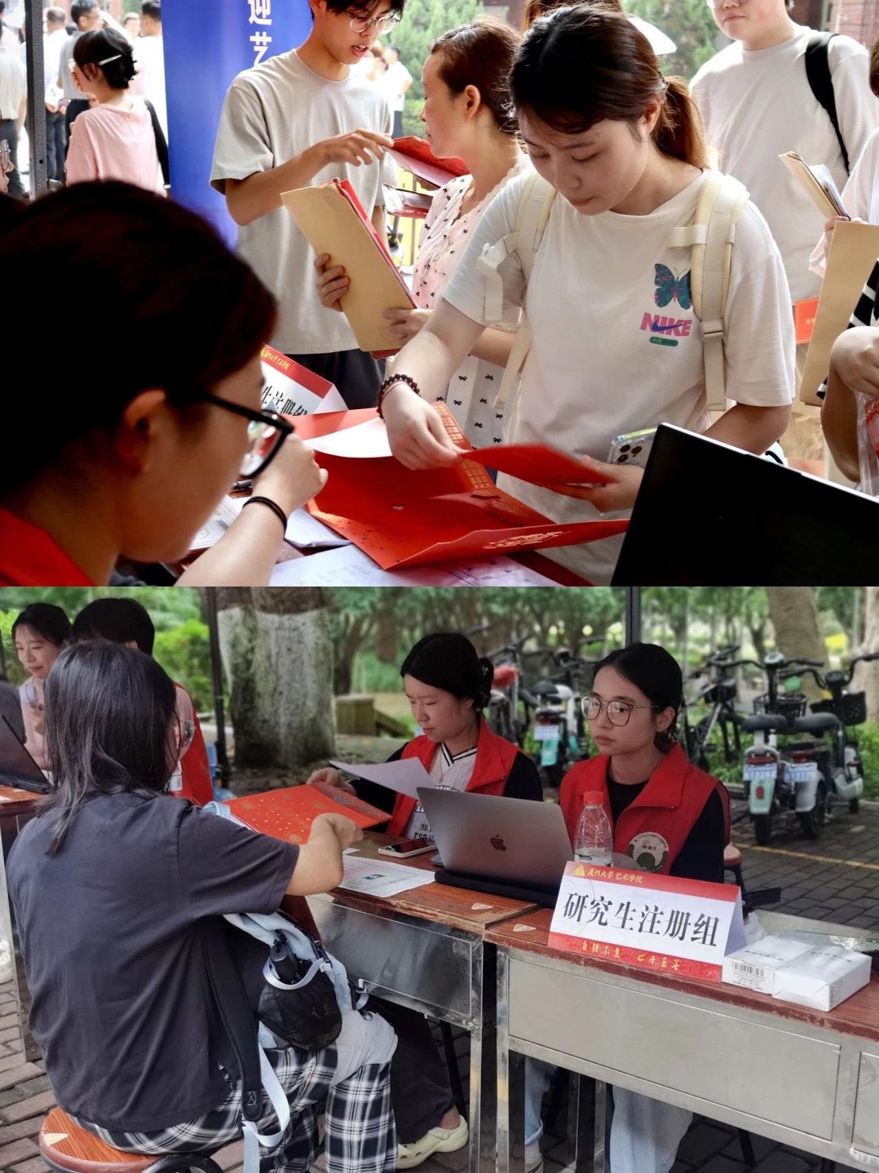 随着新生们陆续抵达迎新点,现场的气氛迅速升温,变得活力四射。详尽的流程海报指引注册报到的每一步,学长学姐们随时待命,为新生们解答疑惑、办理手续、指路导航,让新生们感受到艺术学院满满的热情和关怀,轻松报到!