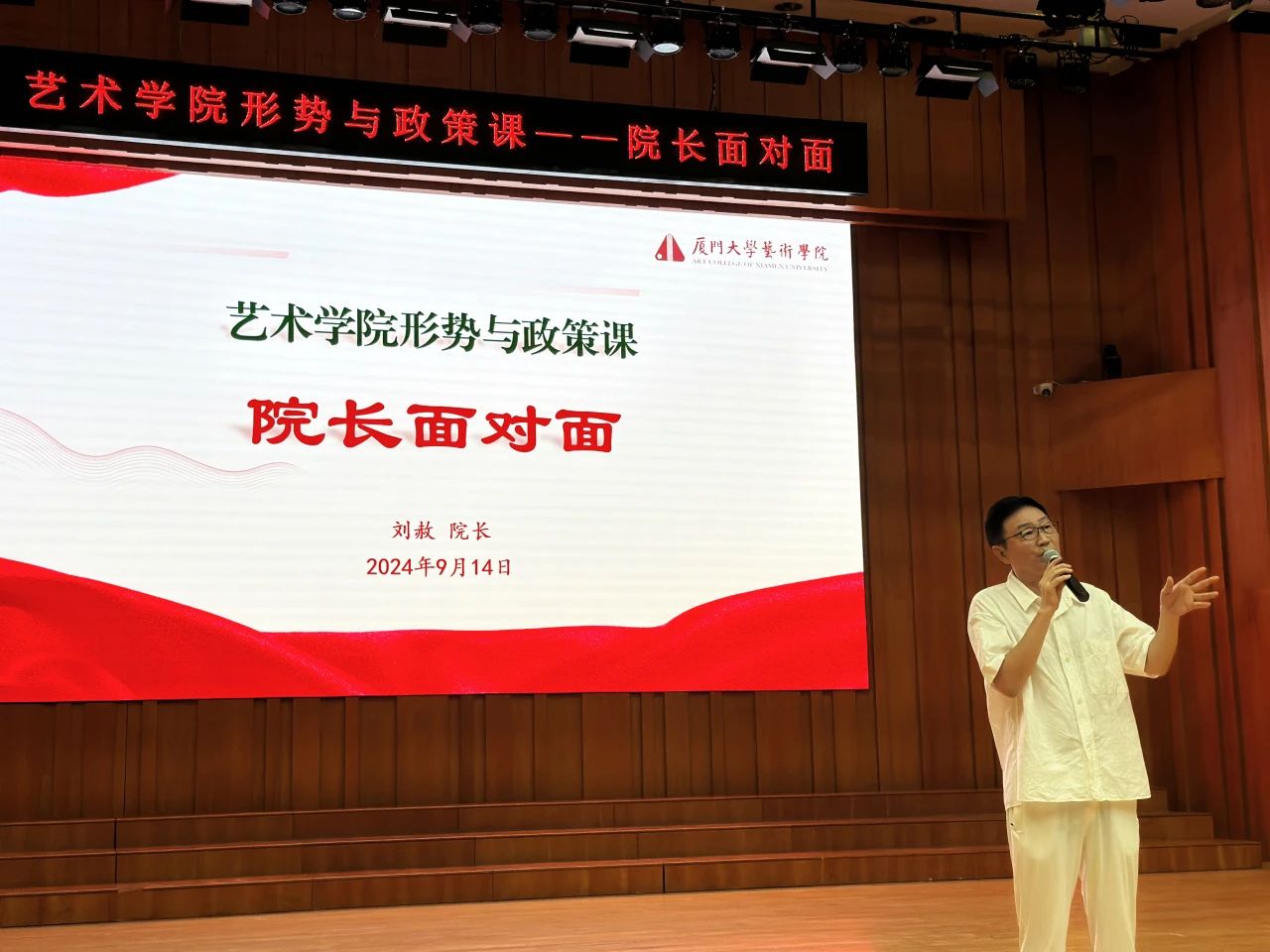 为了引导学生积极规划未来发展,促进学生全面卓越发展,9月14日下午,厦门大学艺术学院院长刘赦教授于大音乐厅为本科生带来了一堂生动且精彩的形势与政策课,院团委书记陈国全主持。